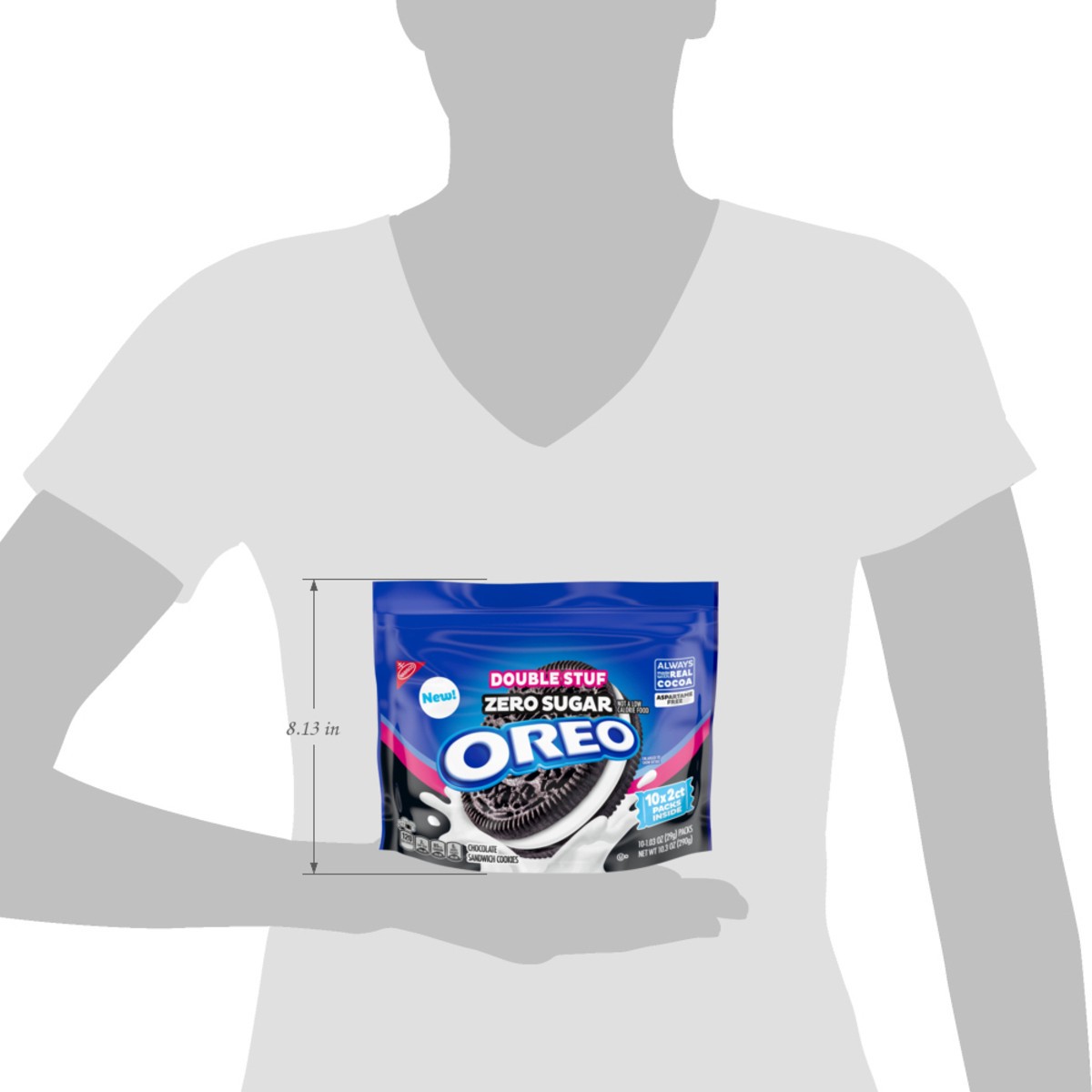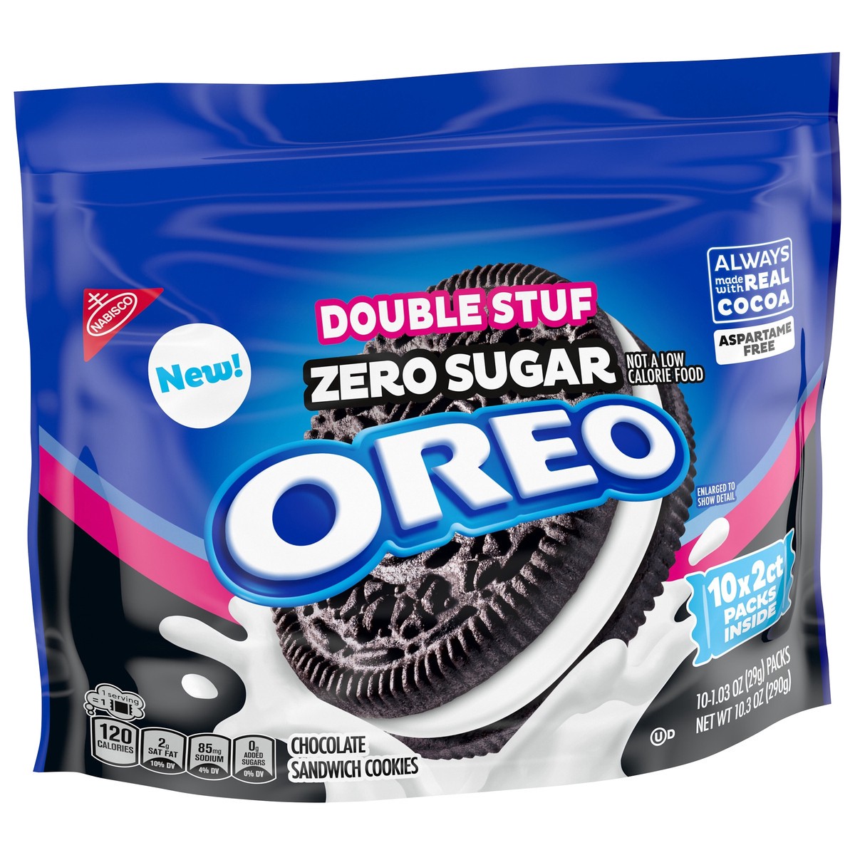 - One 10.3 oz bag with 10 snack packs of OREO Double Stuf Zero Sugar* Chocolate Sandwich Cookies (2 cookies per pack)