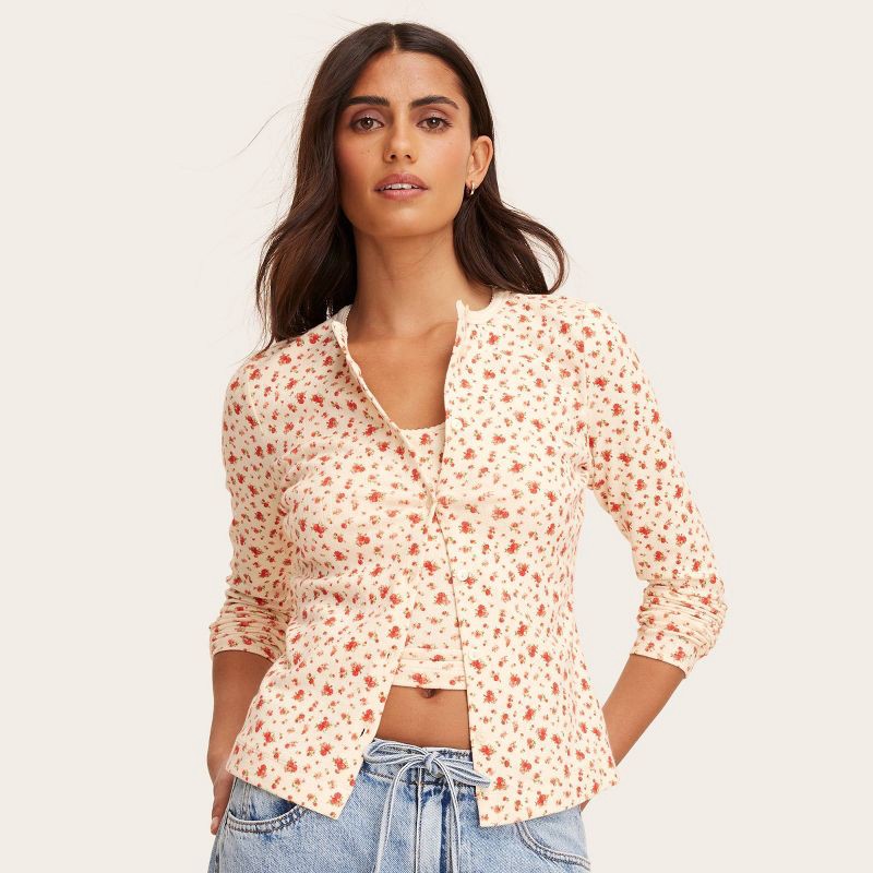 Women's Pointelle Cardigan - Parke x Target Cream Floral S