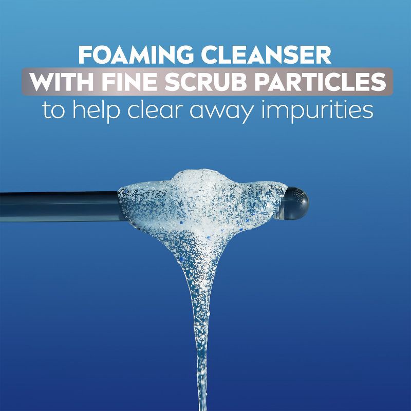 - Foaming facial cleanser with fine scrub particles helps clear away impurities and oil