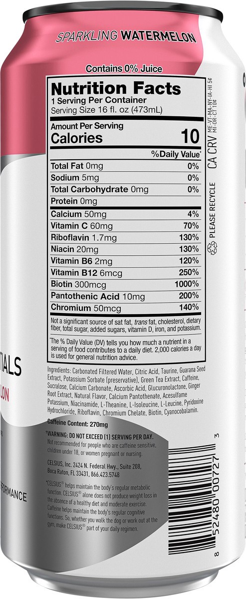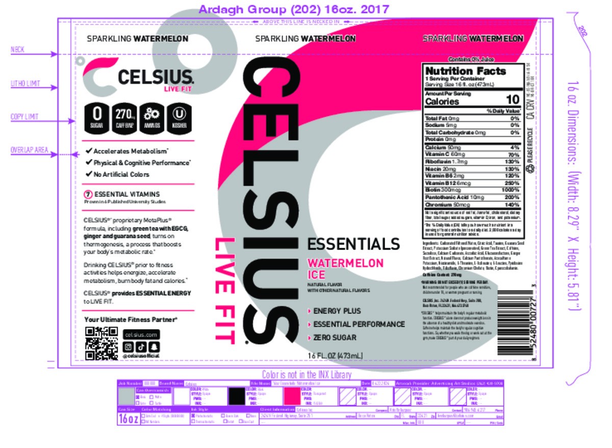 CELSIUS ESSENTIALS, Sparkling Watermelon Ice, Performance Energy Drink 16 Fl Oz Single Can