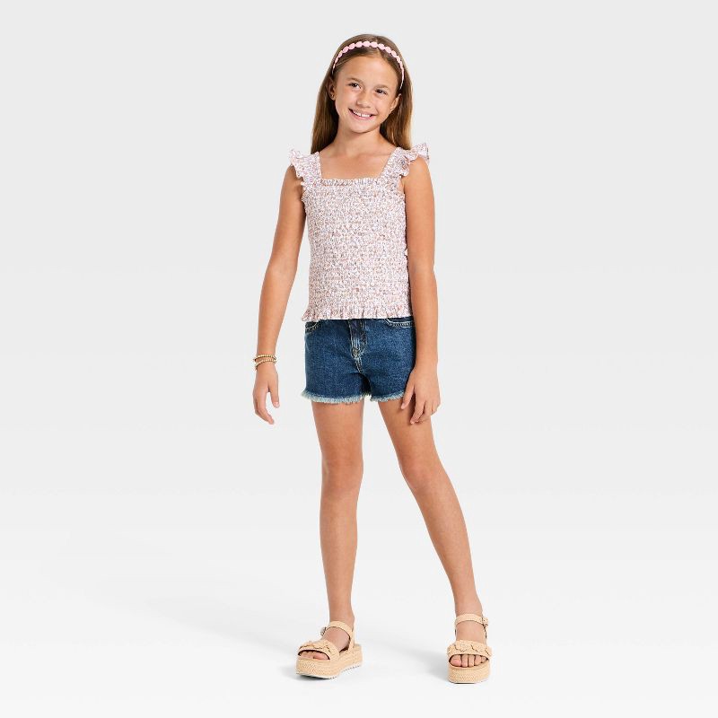 Girls' Mid-Rise Cutoff Jean Shorts - Cat & Jack™ Medium Wash M
