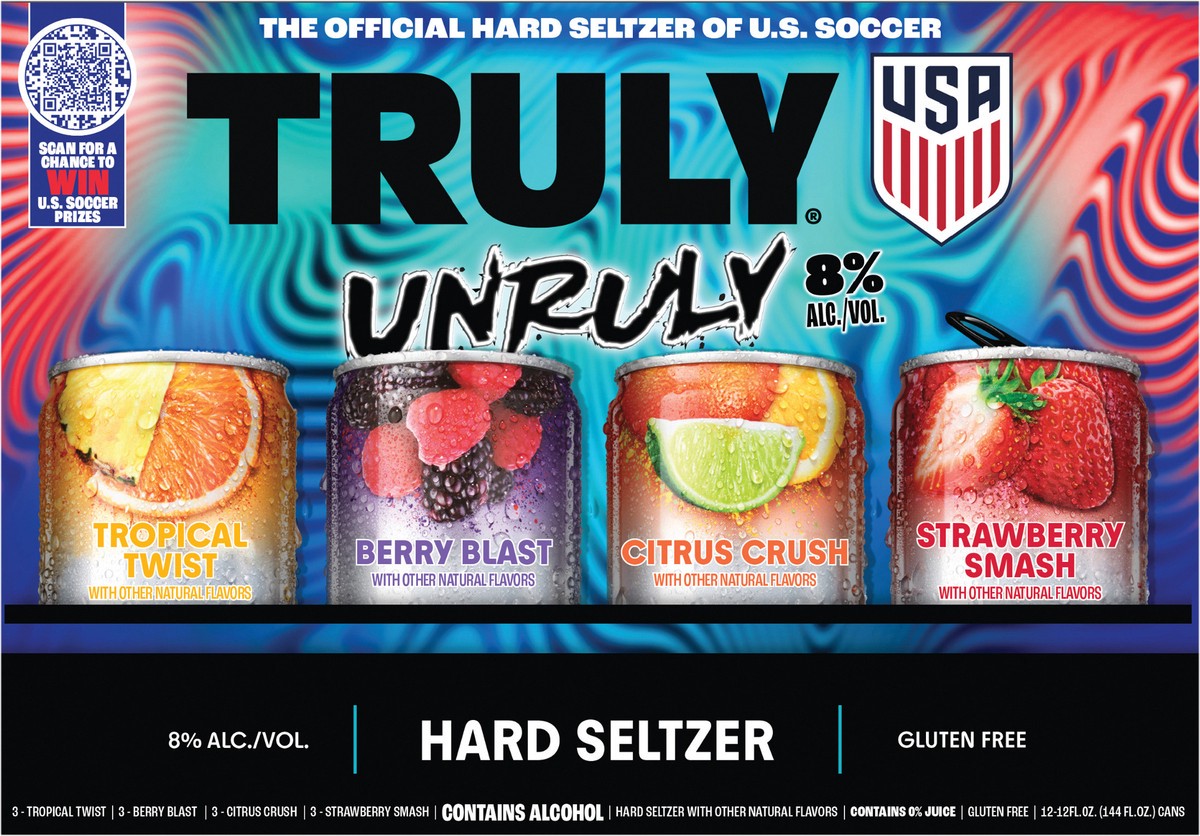 Drinks light. Parties hard. The Truly Unruly Hard Seltzer Variety Pack cranks up the flavor with four bold blends—Strawberry Smash, Tropical Twist, Berry Blast, and Citrus Crush. at 8% ABV, each can g…