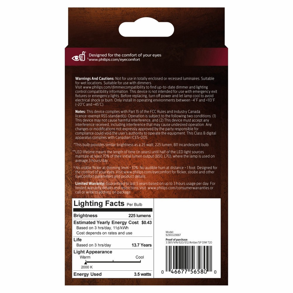 Philips 3.5-Watt (25-Watt) Candelabra Base B11 Vintage Led Light Bulbs