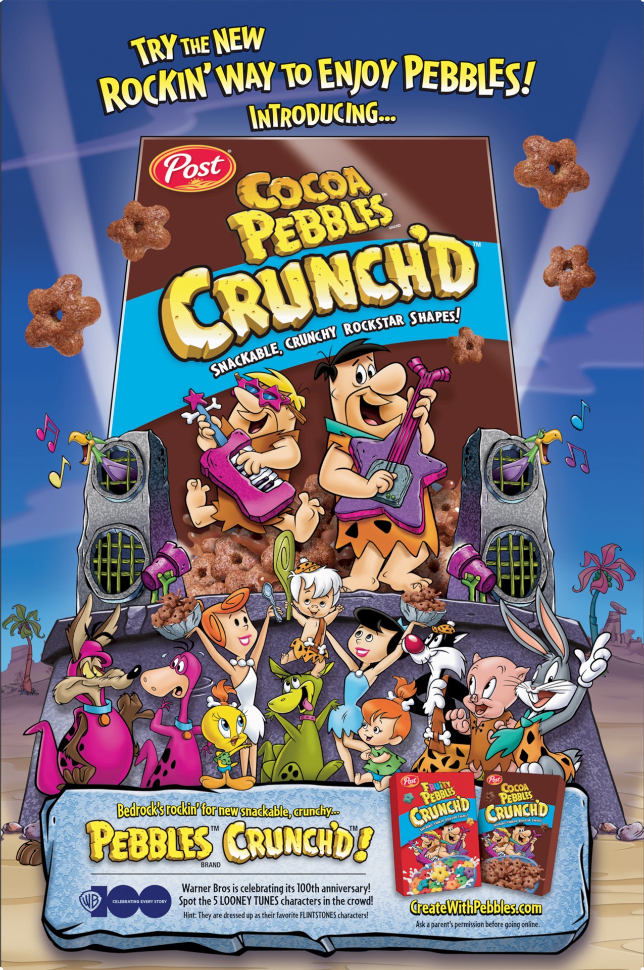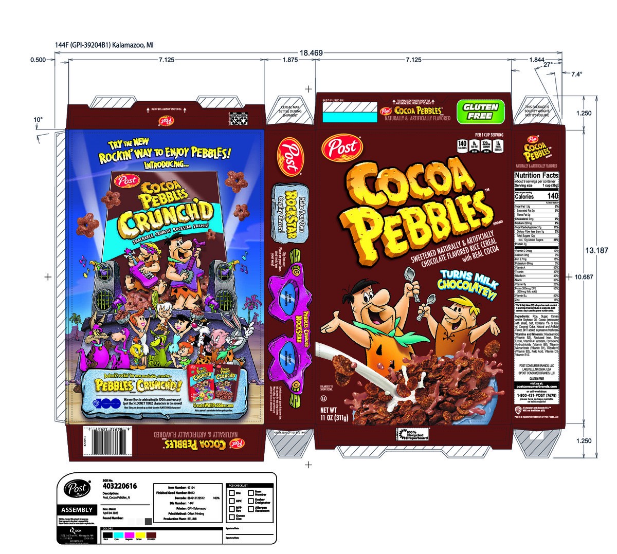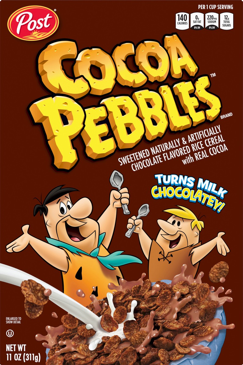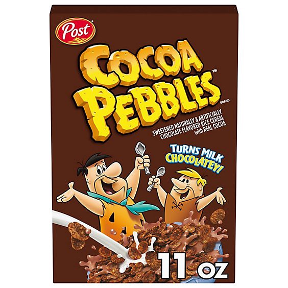 Celebrate creativity and chocolatey Yabba Dabba Doo deliciousness with every bowl of Post Cocoa PEBBLES Kids Cereal. These gluten free cocoa cereal flakes bring joy to morning breakfast cereal time an…