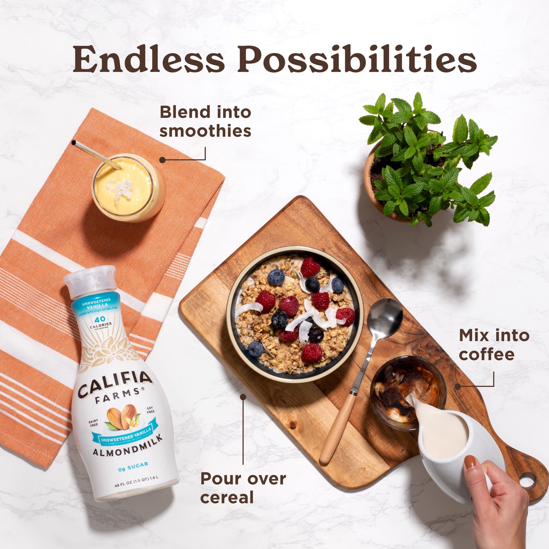 Califia Farms pronounced cal-un-fee-ahh. Just like our California home, we''re named after the legend of Queen Califia. We know you use almond milk in lots of different ways, and that''s why we keep i…