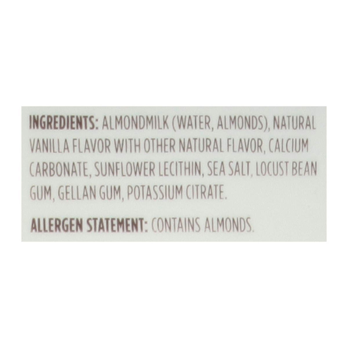 Almondmilk (Water, Almonds), Natural Vanilla Flavor with Other Natural Flavor, Calcium Carbonate, Sunflower Lecithin, Sea Salt, Locust Bean Gum, Gellan Gum, Potassium Citrate
