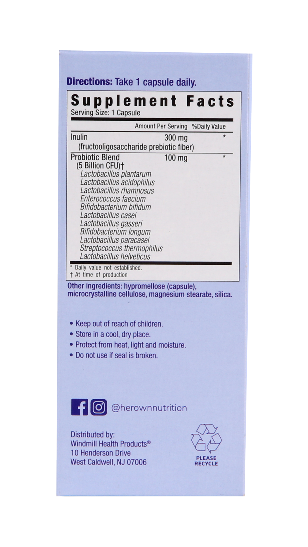 Probiotic blend (5 Billion CFU) (at Time of Production), Lactobacillus Plantarum, Lactobacillus Acidophilus, Lactobacillus Rhamnosus, Enterococcus Faecium, Bifidobacterium Bifidum, Lactobacillus Casei…