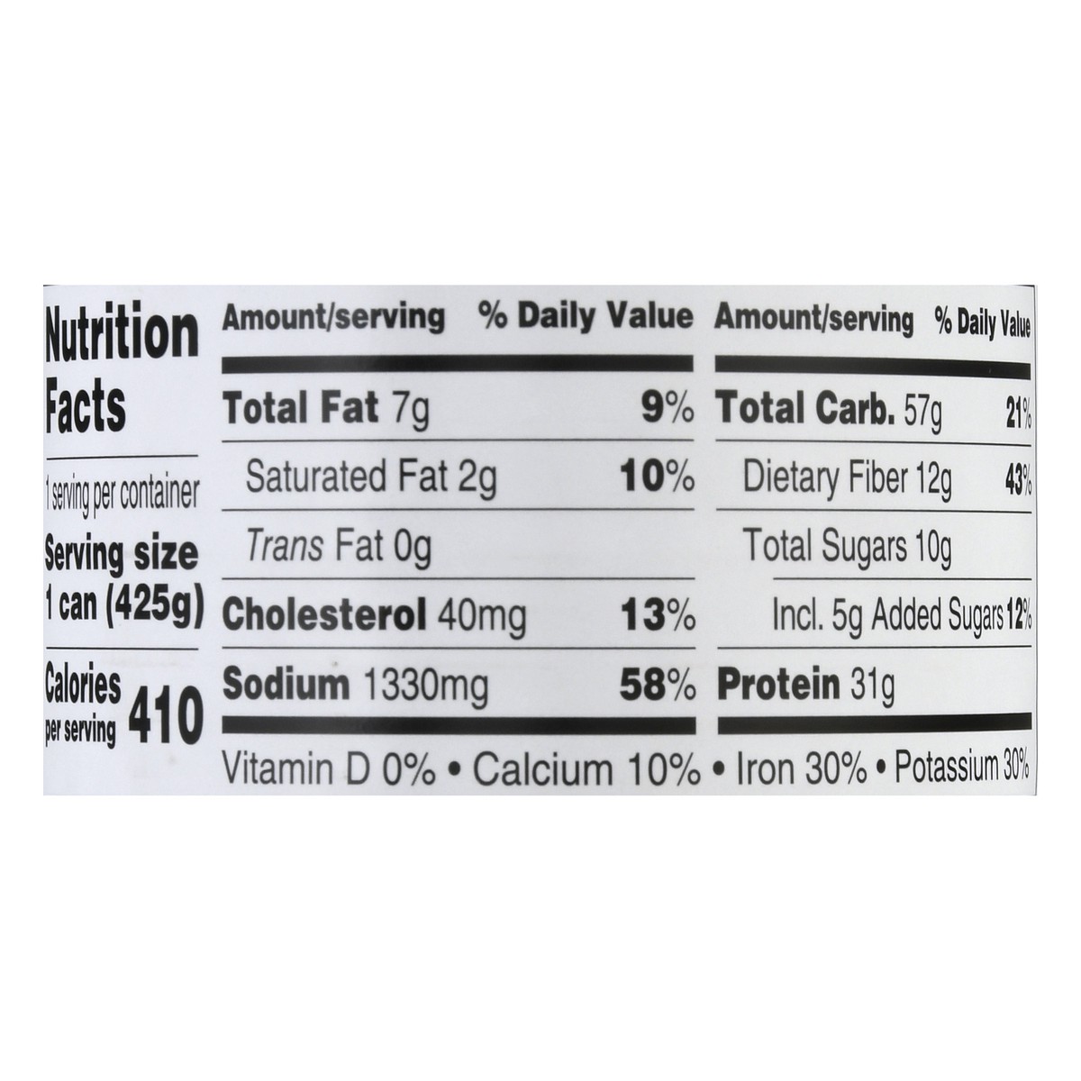 Water, Prepared Beans (Pinto, Kidney), Cooked Shredded Pork (Rubbed with Salt and Natural Flavorings), Tomatoes (Diced Tomatoes, Tomato Juice, Tomato Paste, Citric Acid, Calcium Chloride), Tapioca Sta…
