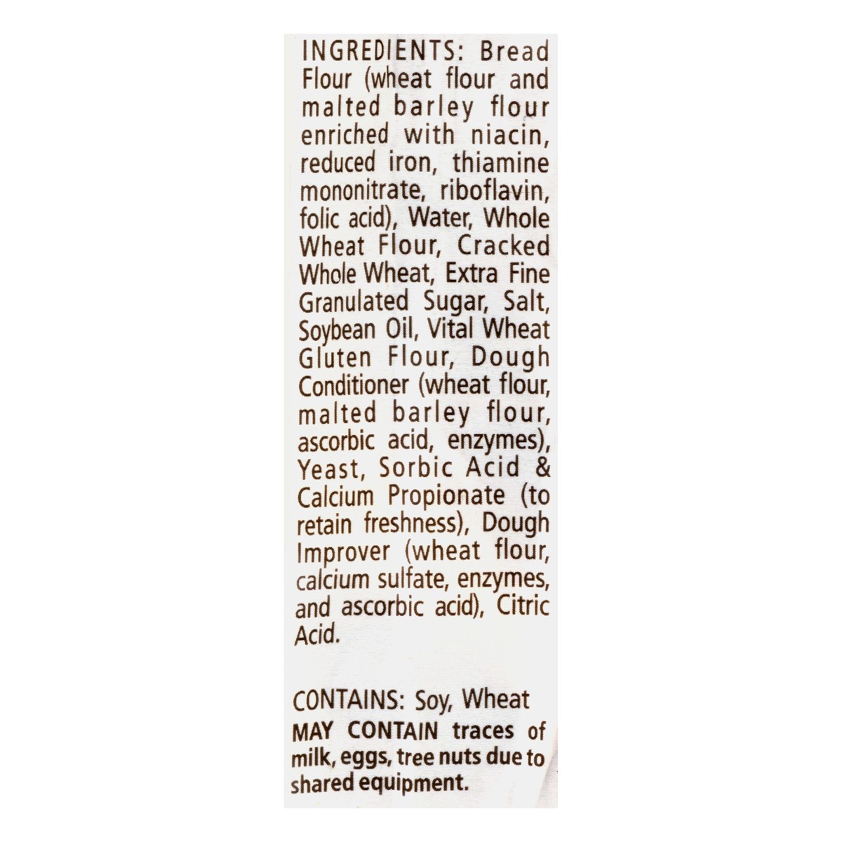 Bread Flour (Wheat Flour and Malted Barley Flour, Enriched with Niacin, Reduced Iron, Thiamine Mononitrate, Riboflavin, Folic Acid), Water, Whole Wheat Flour, Cracked Whole Wheat, Extra Fine Granulateā¦