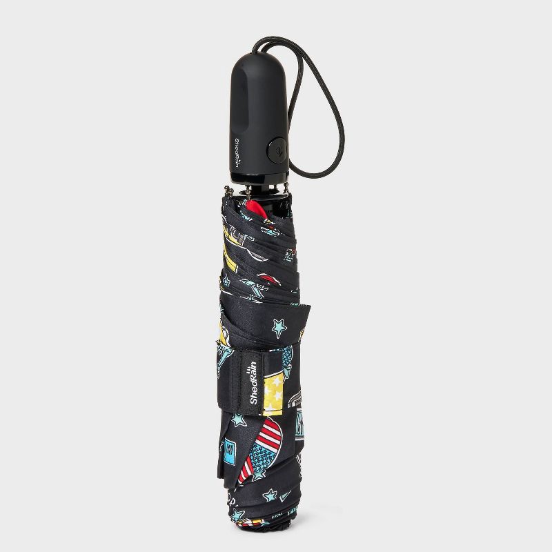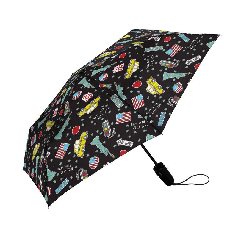 ShedRain Auto Open Auto Close Compact Umbrella - Touring: Telescoping Shaft, Polyester Shell, Cities Pattern