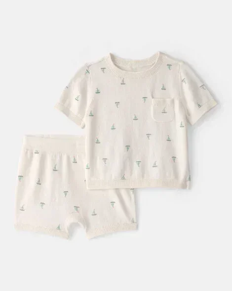 Carter's Baby 2-Piece Sailboat Sweater Top & Short Set - Ivory, 9M