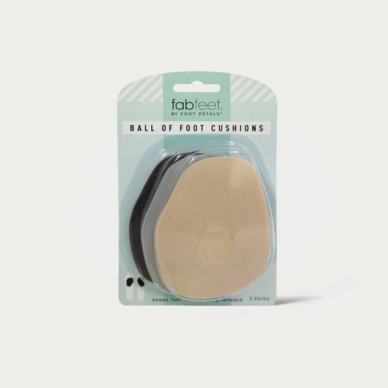 - Includes three pairs of ball of foot cushions in black, khaki, and grey