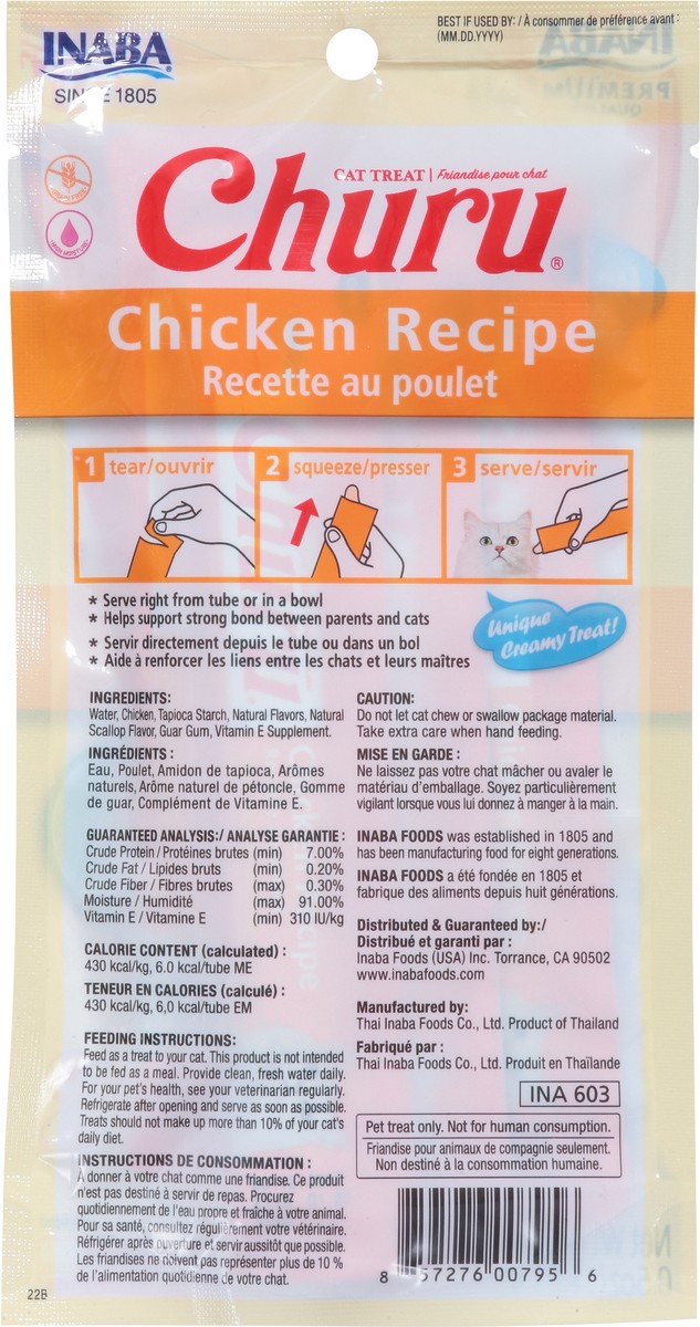 Churu Chicken Recipe Cat Treats 4 - 0.5 oz Tubes