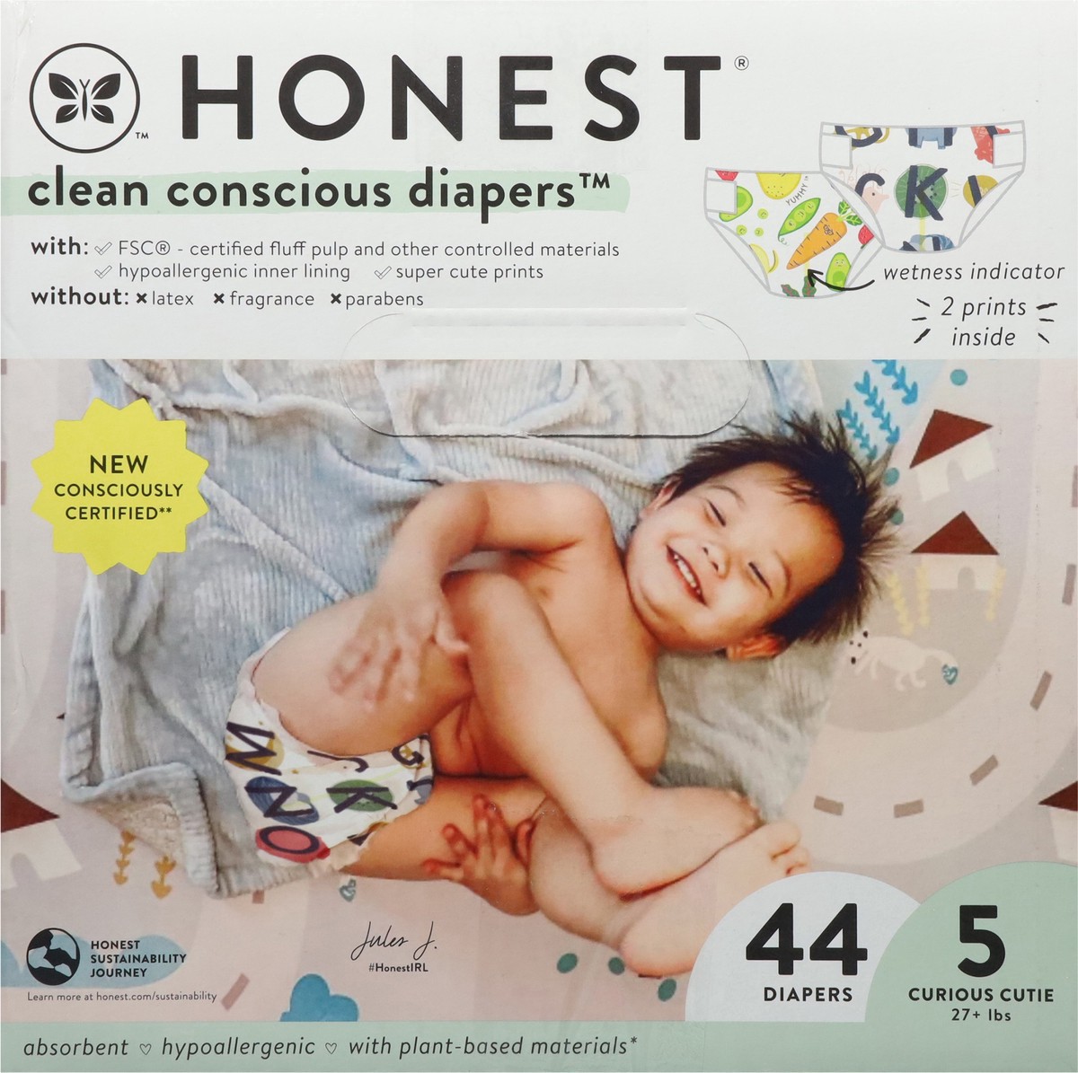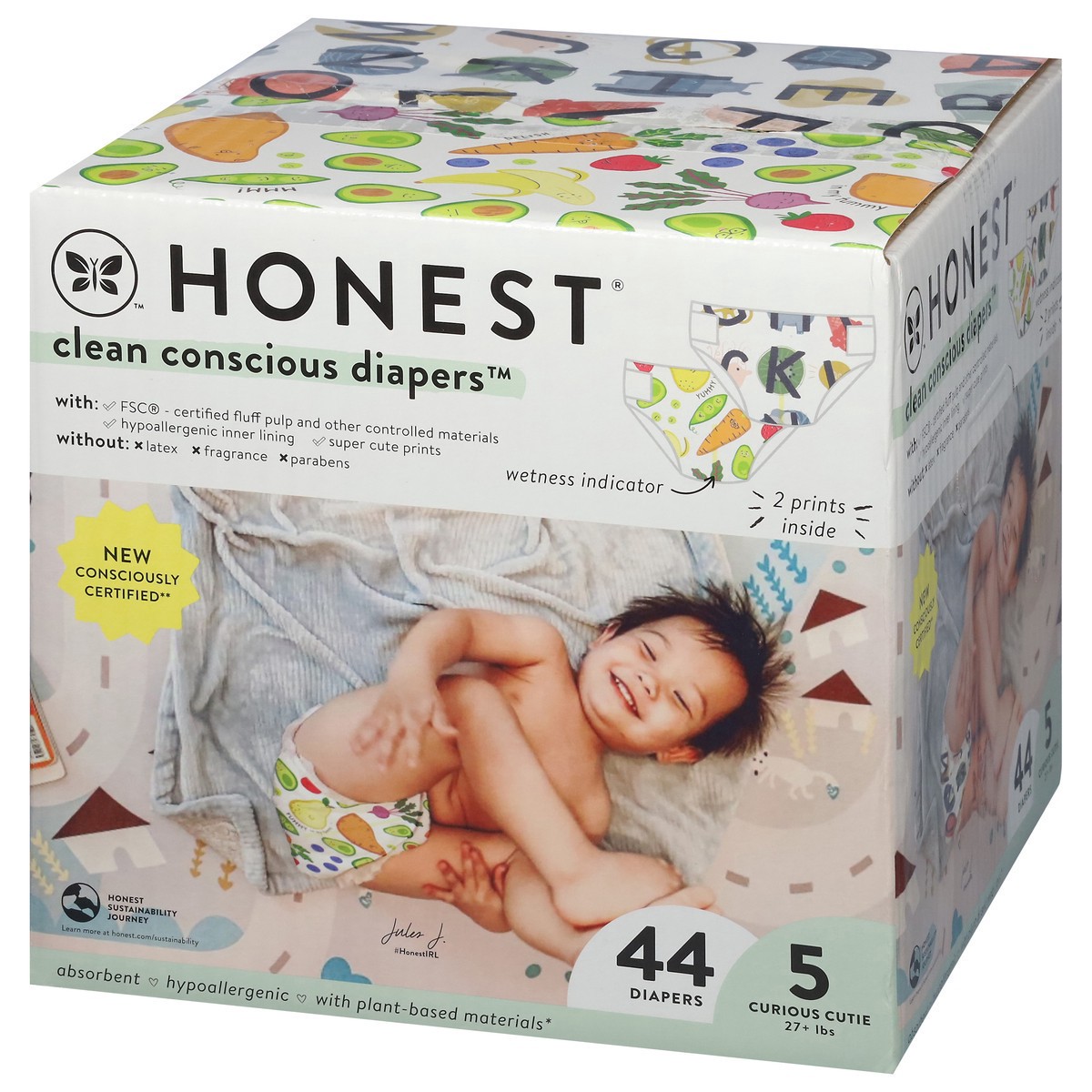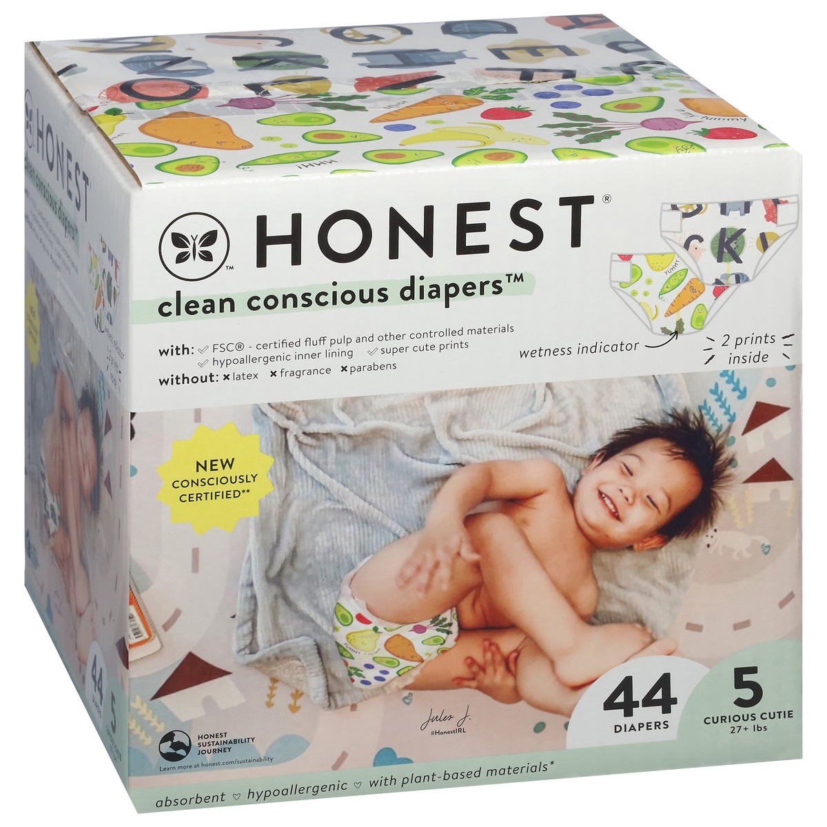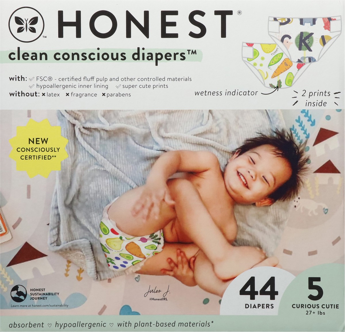 Honest Clean Conscious Diapers! Designed around skin wellness. Great fit, wetness indicator, stretchy side panels, fast absorbing using plant based core, new fashion inspired print strategy aligned wi…