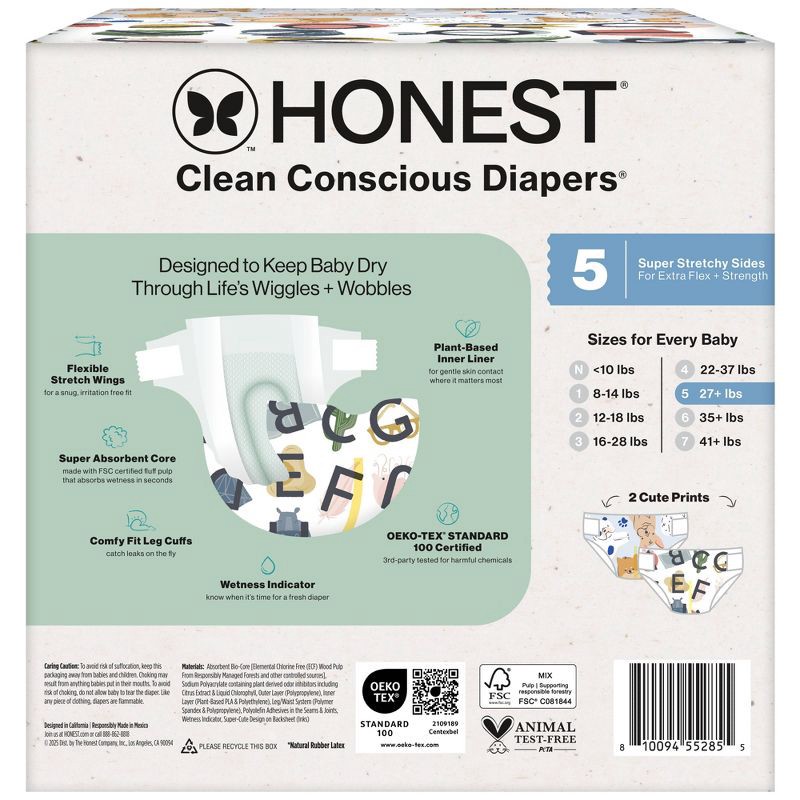 The Honest Company Clean Conscious Diapers - It's a Pawty + All the Letters - Size 5 - 44ct
