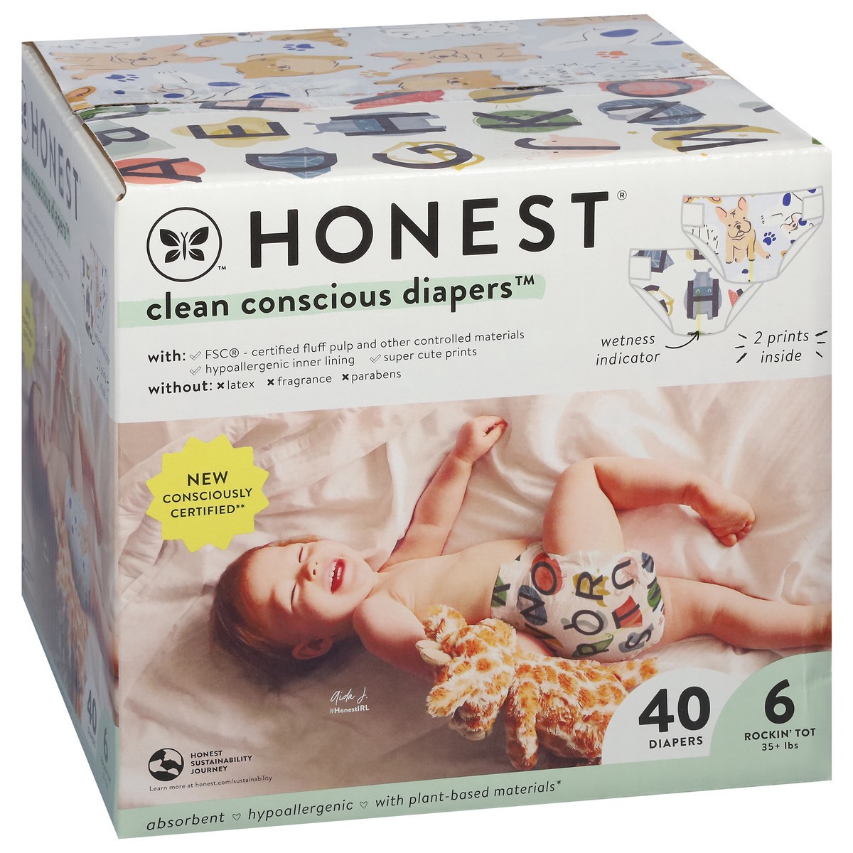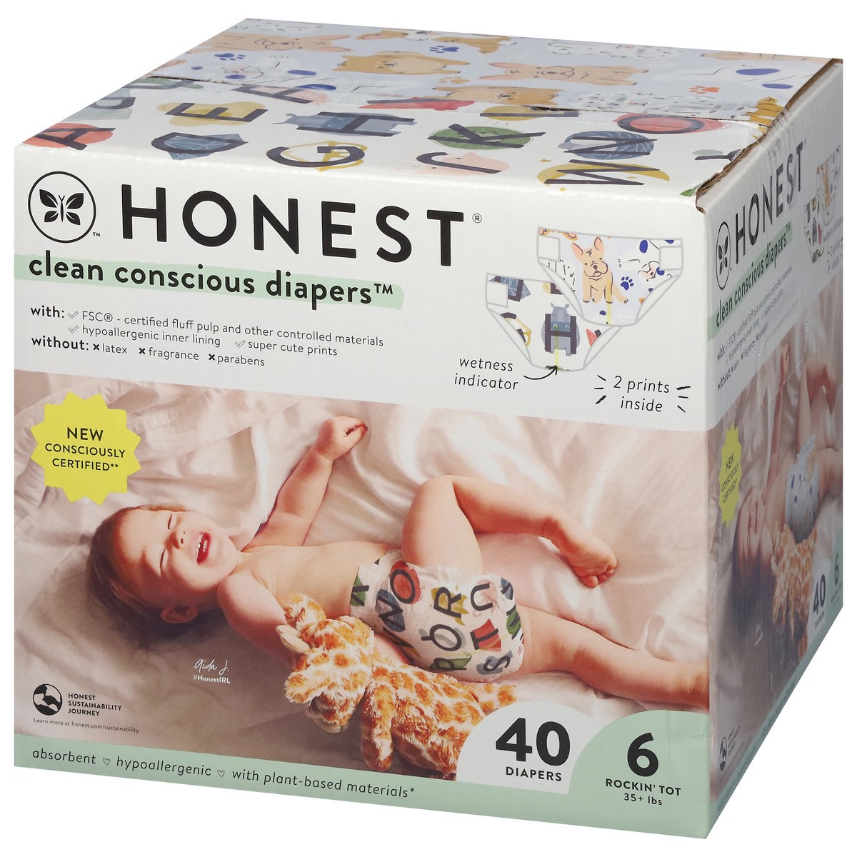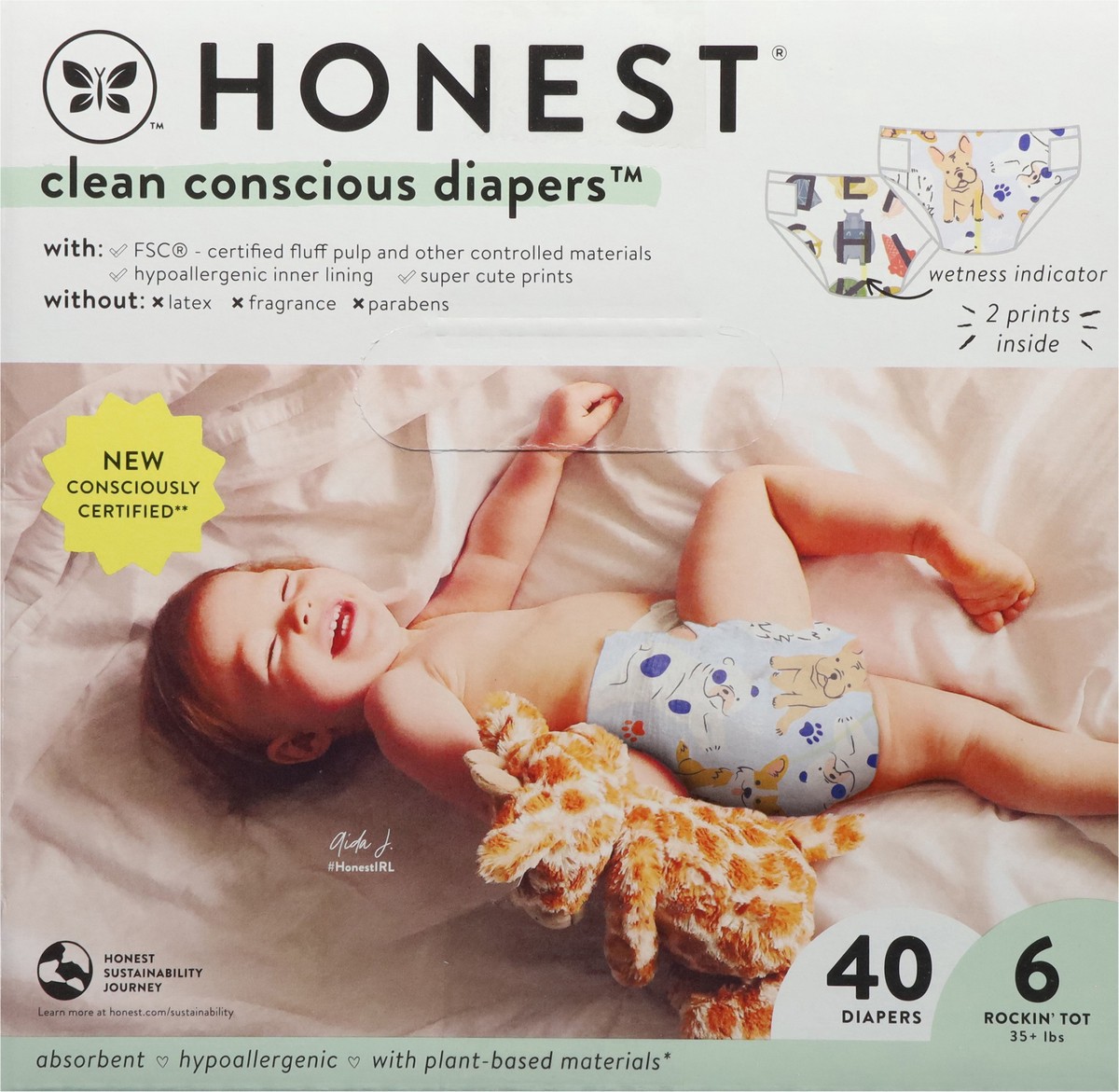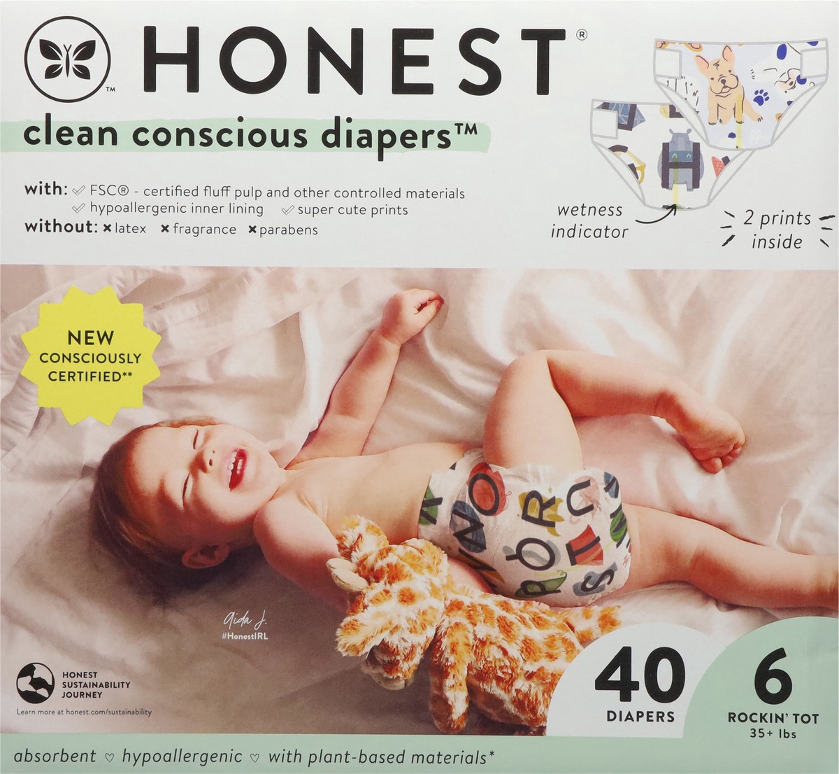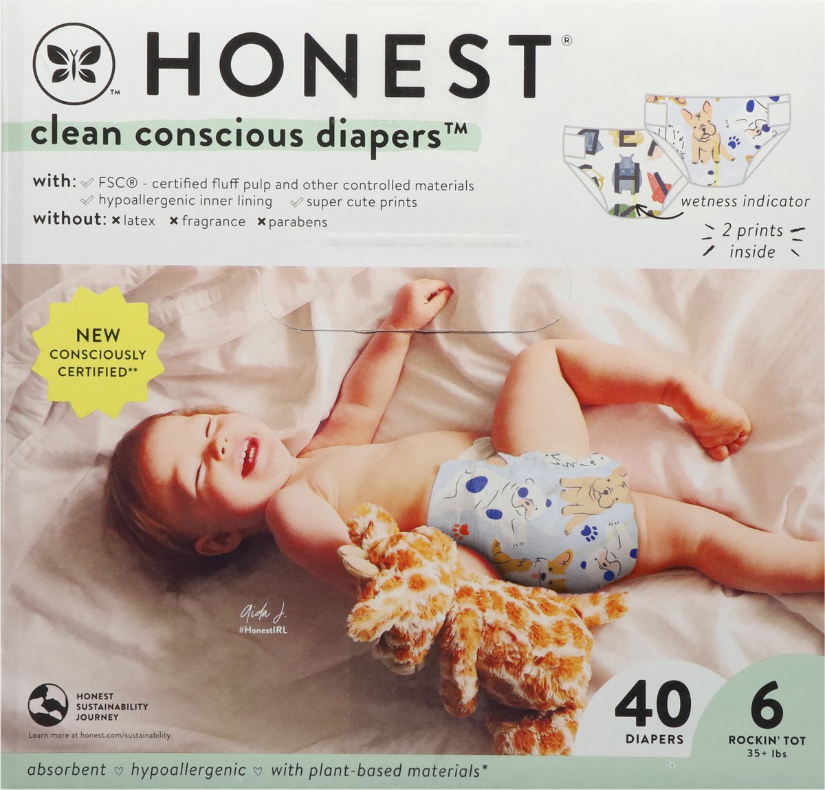 Honest Clean Conscious Diapers! Designed around skin wellness. Great fit, wetness indicator, stretchy side panels, fast absorbing using plant based core, new fashion inspired print strategy aligned wi…