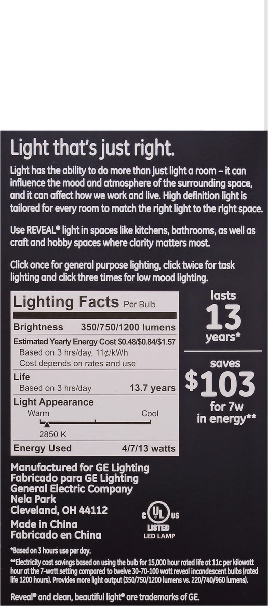 GE Reveal 4/7/13 Watts 3-Way LED Light Bulb 1 ea