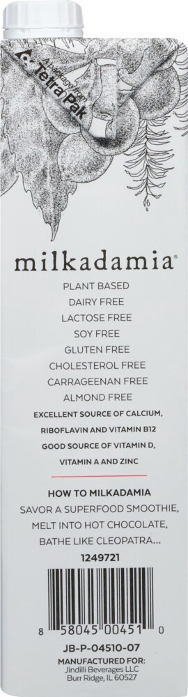 Macadamia Milk (Filtered Water, Macadamias), Calcium Phosphate, Natural Flavors, Guar Gum, Pea Protein, Sunflower Lecithin, Sea Salt, Gellan Gum, Zinc Sulfate, Vitamin A Acetate, Vitamin D2, Riboflavi…