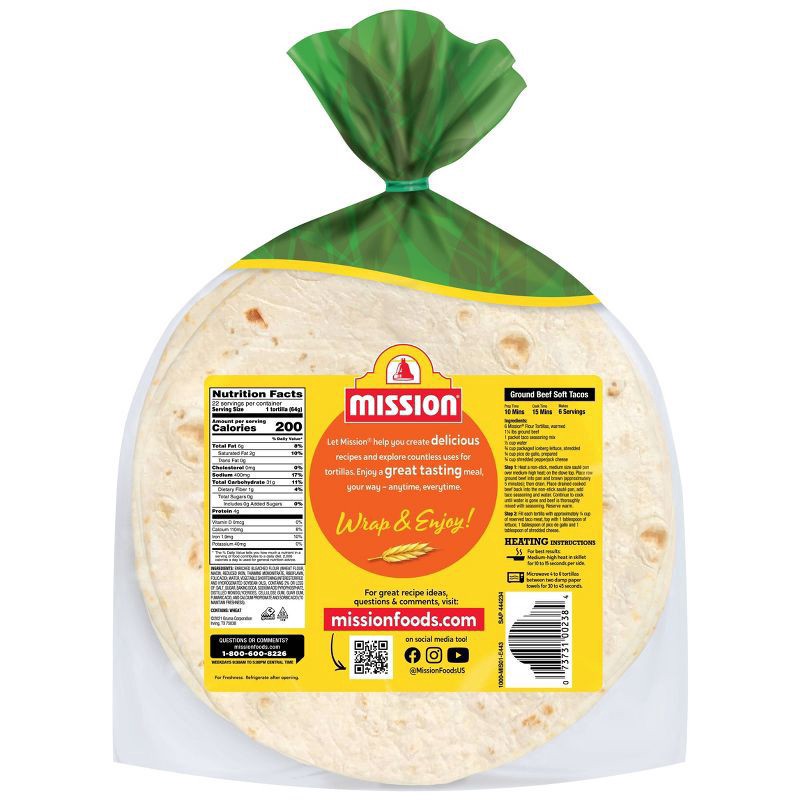 - One 22-count package of Mission Homestyle Soft Taco Flour Tortillas