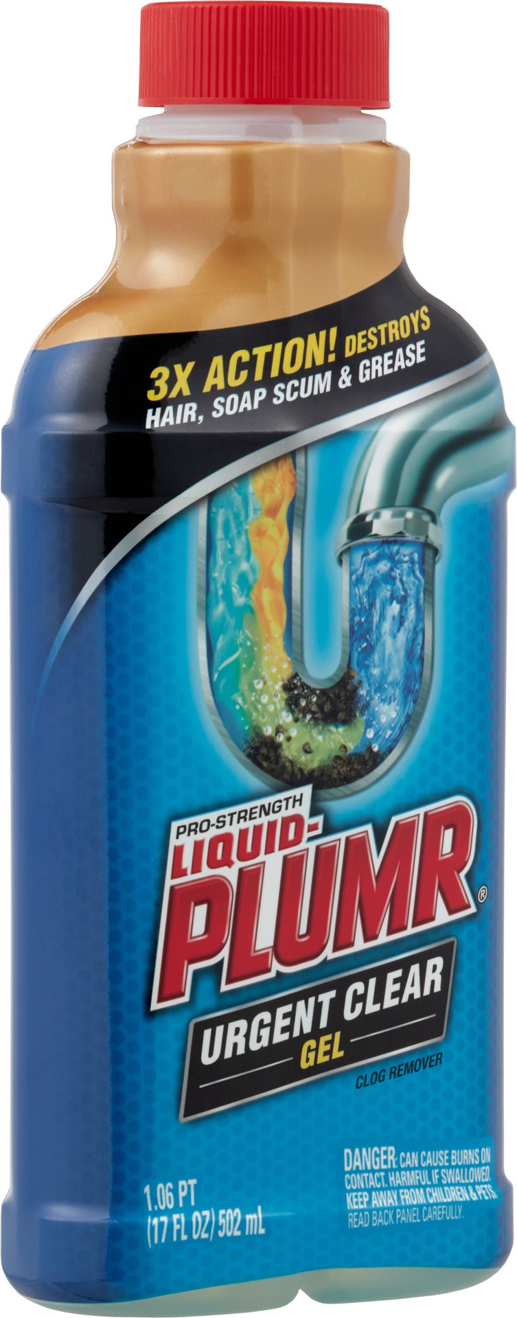 Unclog drains in minutes with Liquid-Plumr Urgent Clear. Its 3-in-1 action destroys hair, soap scum and grease fast. Using two powerful gels, the first gel cuts through standing water and unclogs tota…