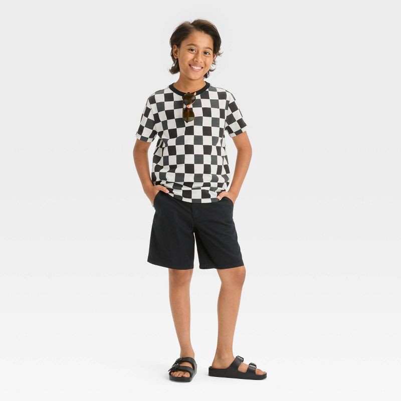 Boys' Flat Front 'At the Knee' Chino Shorts - Cat & Jack™ Black 7: Adjustable Waistband, Side Pocket