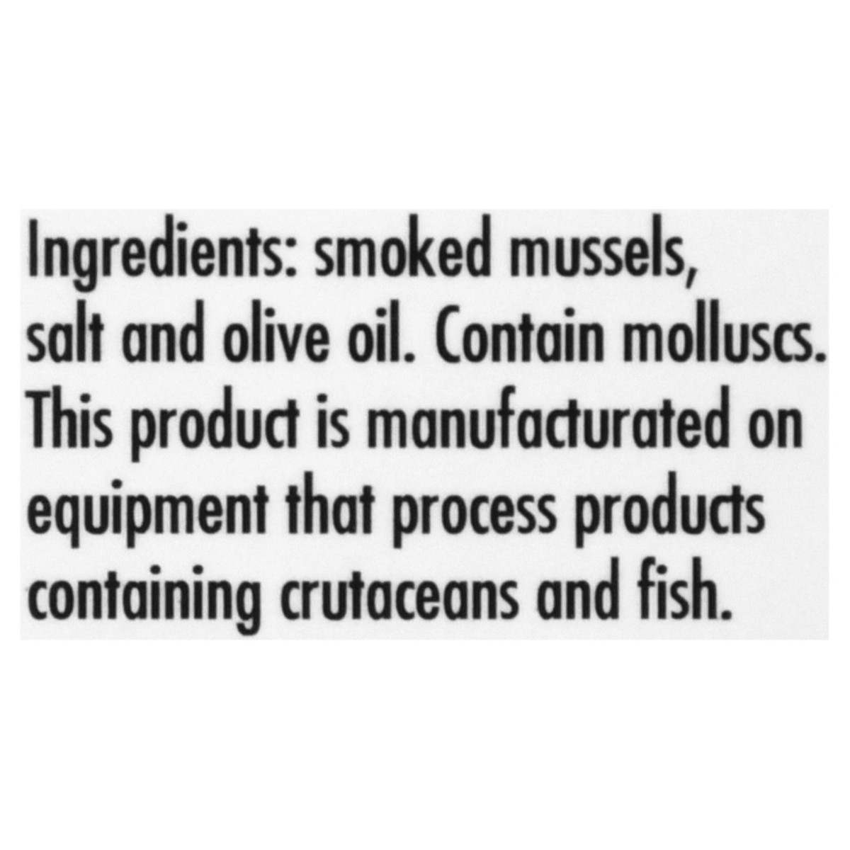 Smoked Mussels, Salt and Olive Oil, Contain Molluscs. This Product is Manufacturated on Equipment That Process Products Containing Crutaceans and Fish.