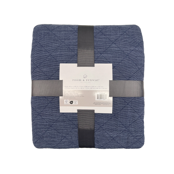 Room & Retreat 3pc Denim Quilt Set, F/Q, 90 x 90
