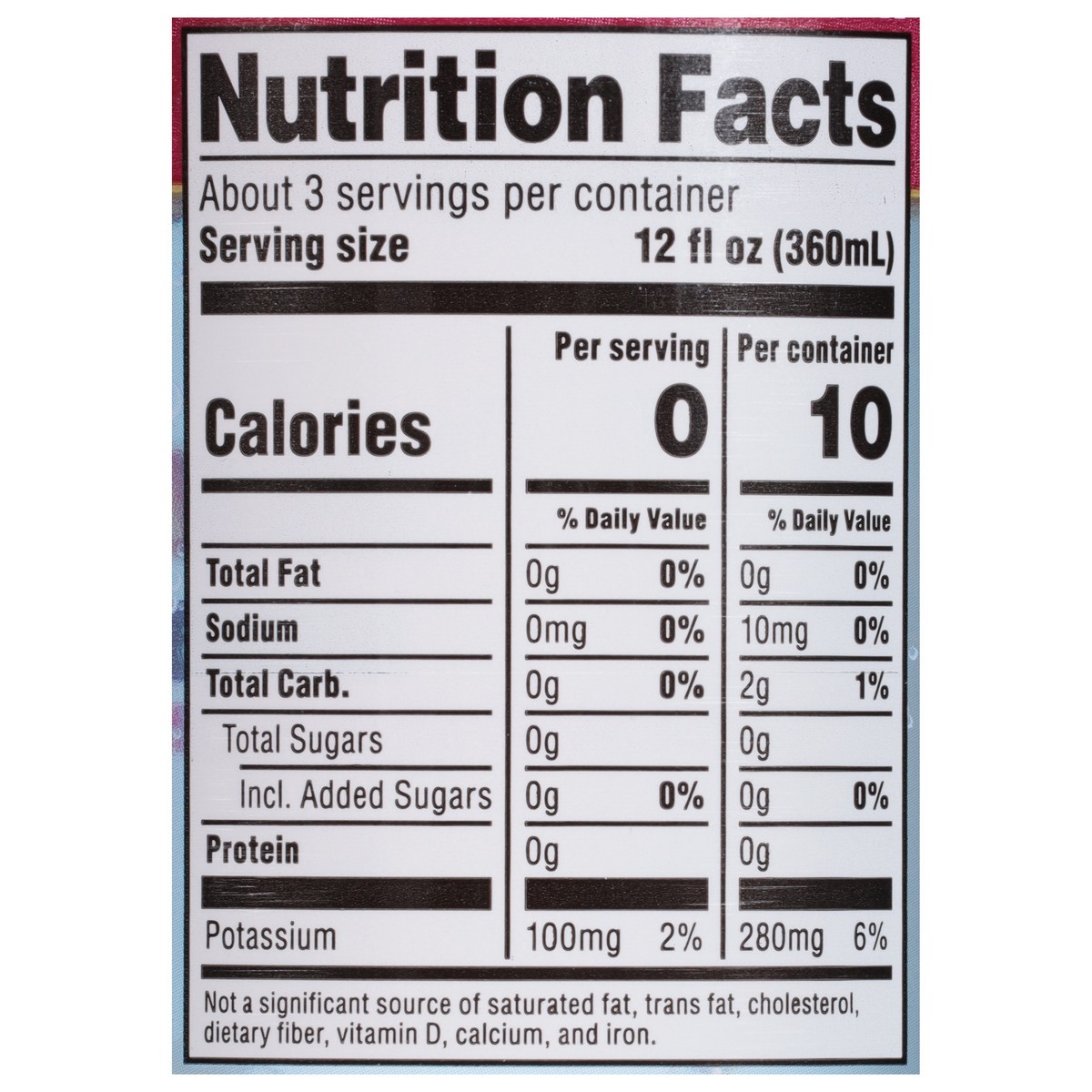 Carbonated Water, Citric Acid, Natural Flavor, Potassium Citrate, Aspartame, Potassium Benzoate (Preservative), Acesulfame Potassium, Malic Acid.