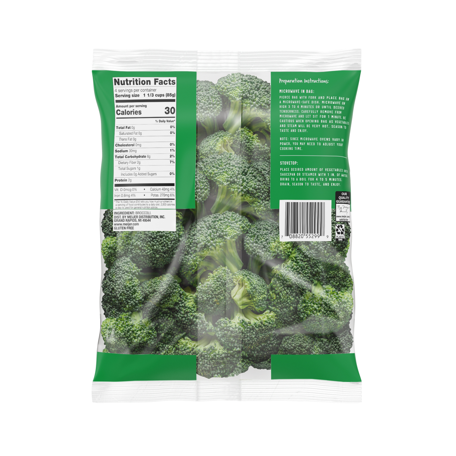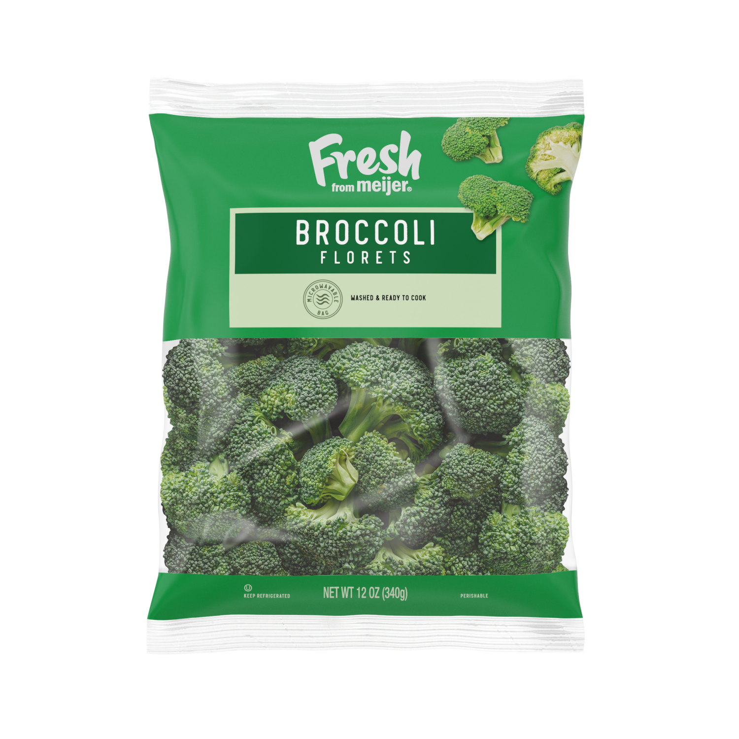 Enjoy the crisp, fresh taste of Fresh from Meijer broccoli florets, perfect for steaming or adding to recipes. Pre-washed and ready to cook, they bring convenience to your kitchen as they're packed in…