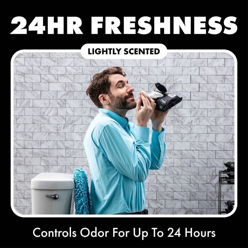 - Odor-destroying flushable wet wipes designed to control odor for up to 24 hours