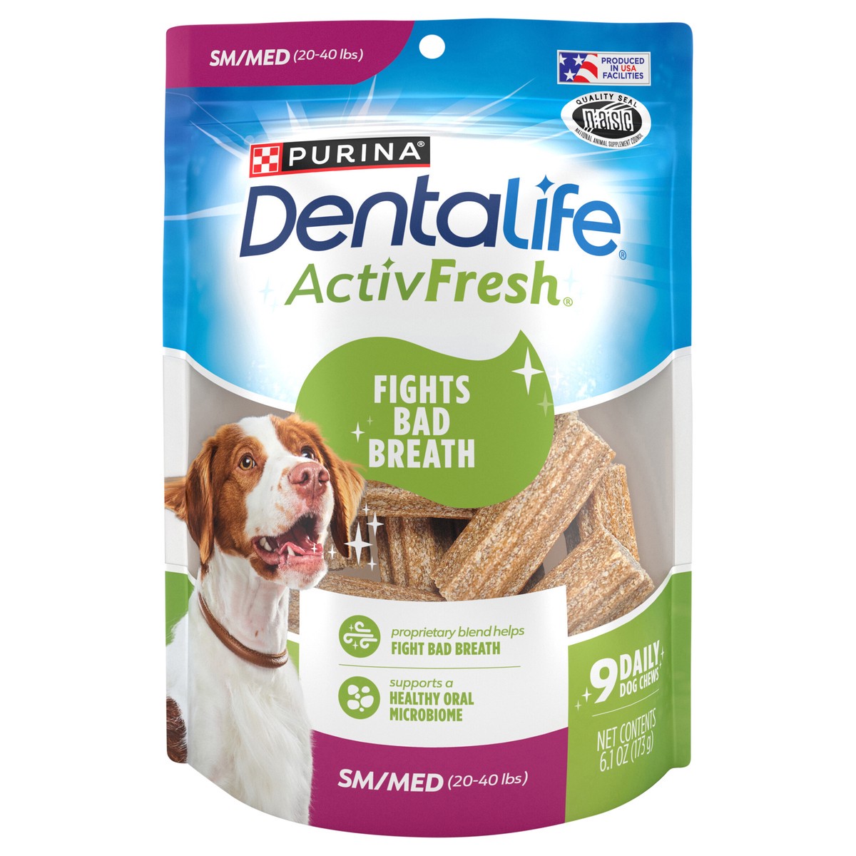 Give your dog a delicious way to fight bad breath with Purina DentaLife ActivFresh Oral Care small/medium dog CHEWS. Your dog's bad breath can be one of the few outward signs of dental problems lurkin…