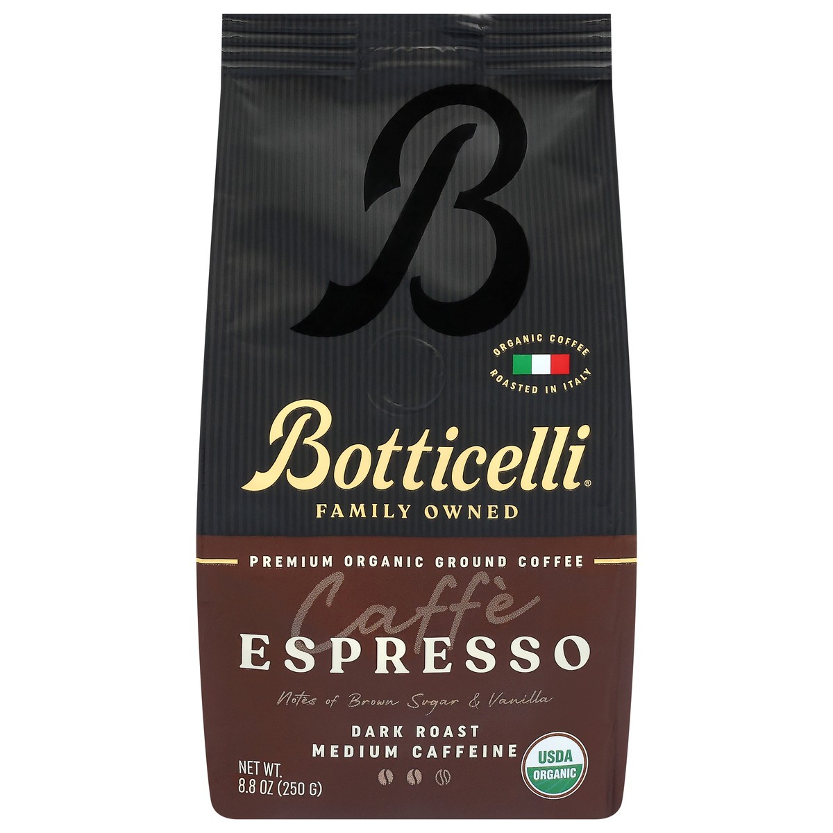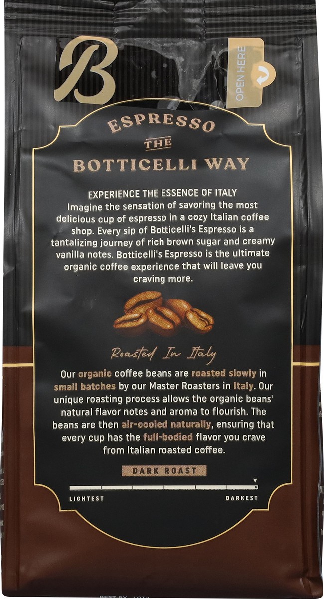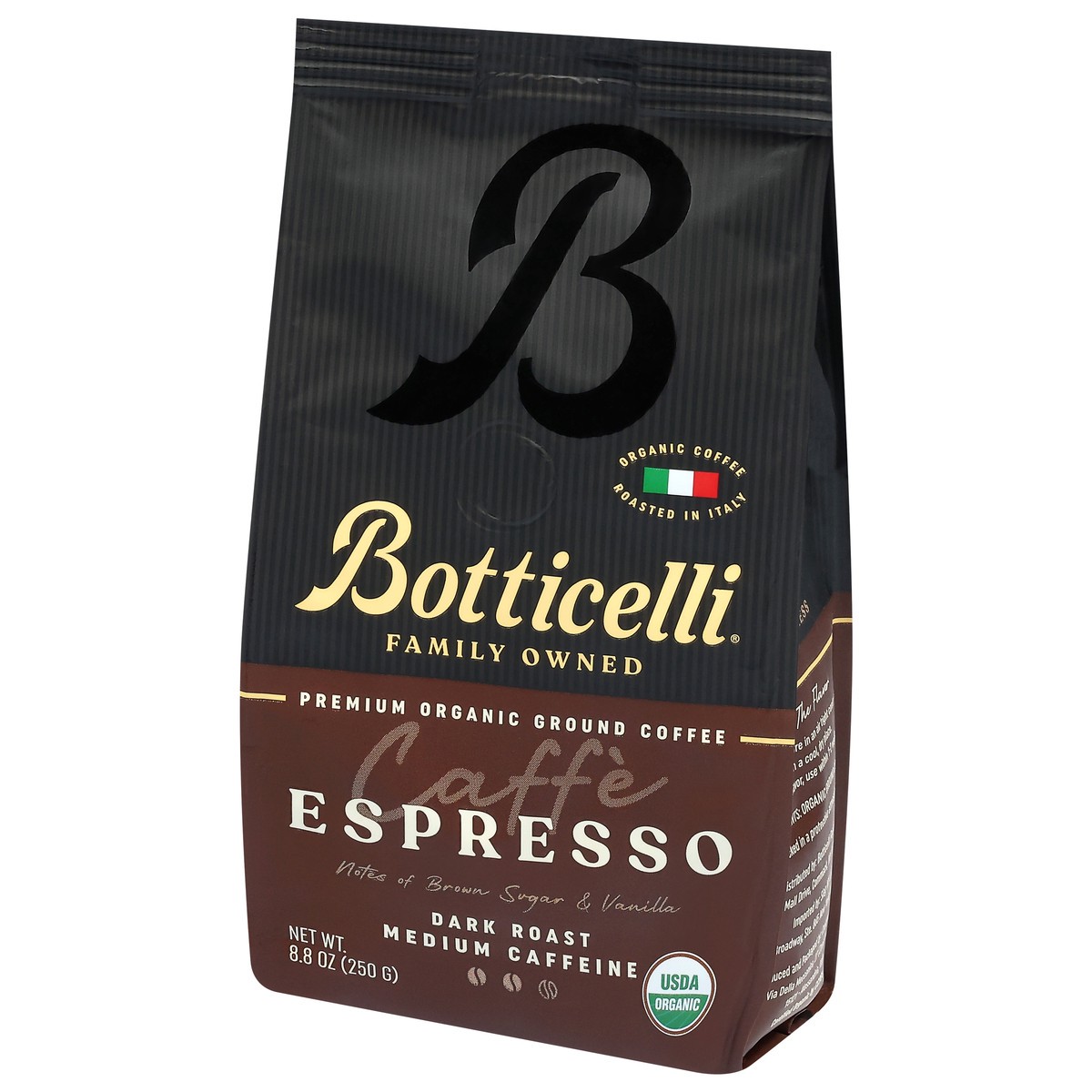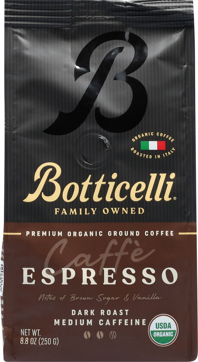 Botticelli Medium Caffeine Premium Organic Ground Dark Roast Espresso Coffee 8.8 oz