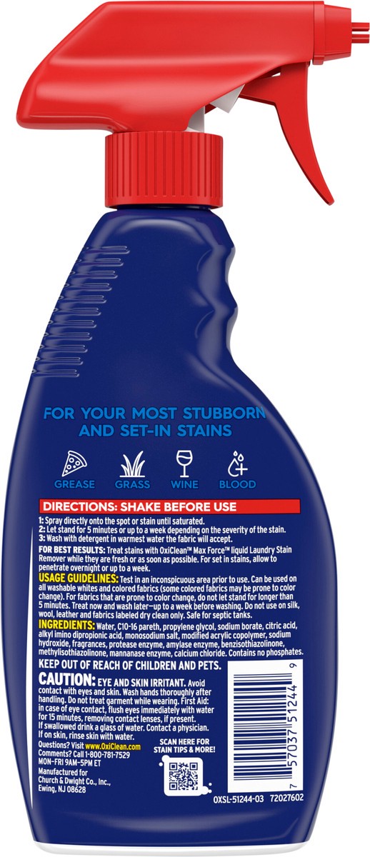 Turn whoops into wow with OxiClean Max Force Laundry Stain Remover Spray. That''s because this convenient stain treater spray lets you spray now and wash up to 7 days later. It has 5 powerful stain fi…