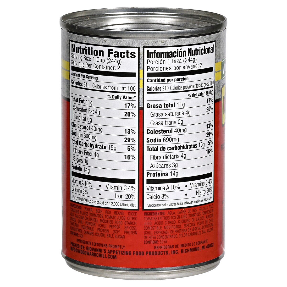 Ingredients: Water, Beef And Pork, Diced Tomatoes In Juice (Tomatoes, Tomato Juice, Citric Acid, Calcium Chloride), Red Beans, Modified Food Starch, Textured Vegetable Protein (Soy Protein Concentrate…