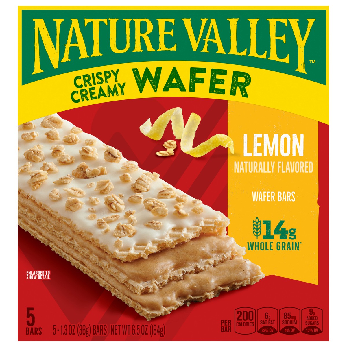 Nature Valley Crispy Creamy Wafer Bars, Lemon, Whole Grain, 5 Bars, 6.5 oz