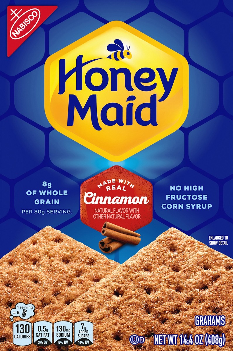 HONEY MAID Cinnamon Graham Crackers are made with real cinnamon for just the right amount of sweetness to keep you smiling. These square cinnamon crackers are ideally sized for packing in lunchboxes o…