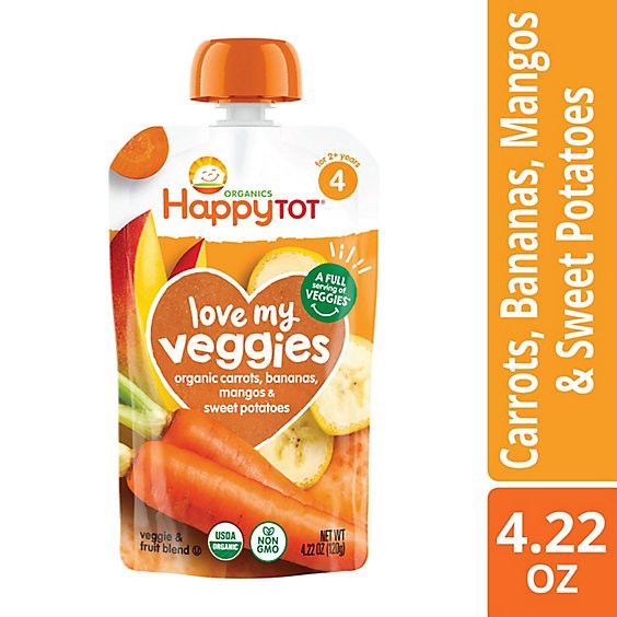 Happy Tot Organics Love My Veggies Stage 4 Organic Carrots Bananas Mangos Sweet Potatoes - 4.22 Oz