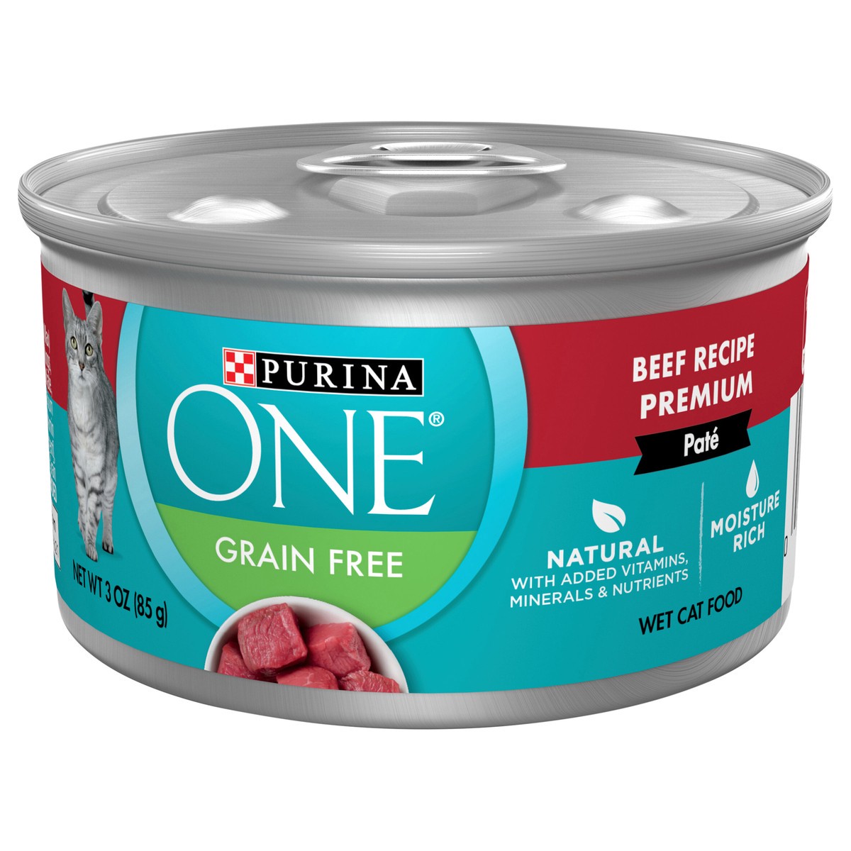 Purina ONE Natural, High Protein, Grain Free Wet Cat Food Pate, Beef Recipe