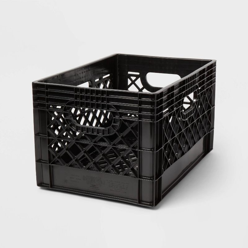 The 24-Quart Heavy Duty Stackable Storage Crate provides useful storage for your items. Made with industrial grade plastic, this black crate comes with an open top and side cut-out handles for conveni…