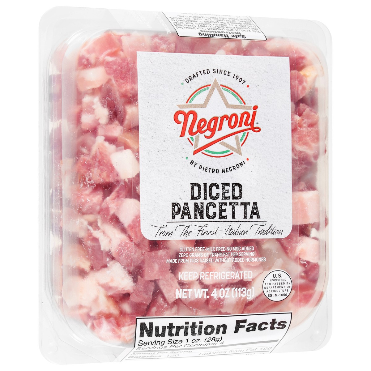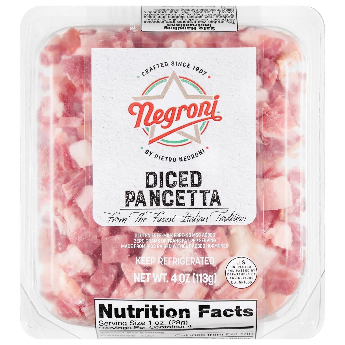 Zero grams of trans fat per serving. Gluten free. Milk free. Crafted since 1907 by Pietro Negroni. No MSG added. Made from pigs raised without added hormones. From the finest Italian tradition. U.S. i…