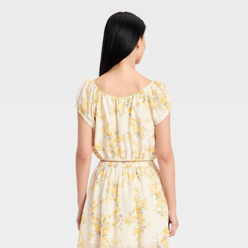 Women's Short Puff Sleeve Tie Top - A New Day™ White Floral XS