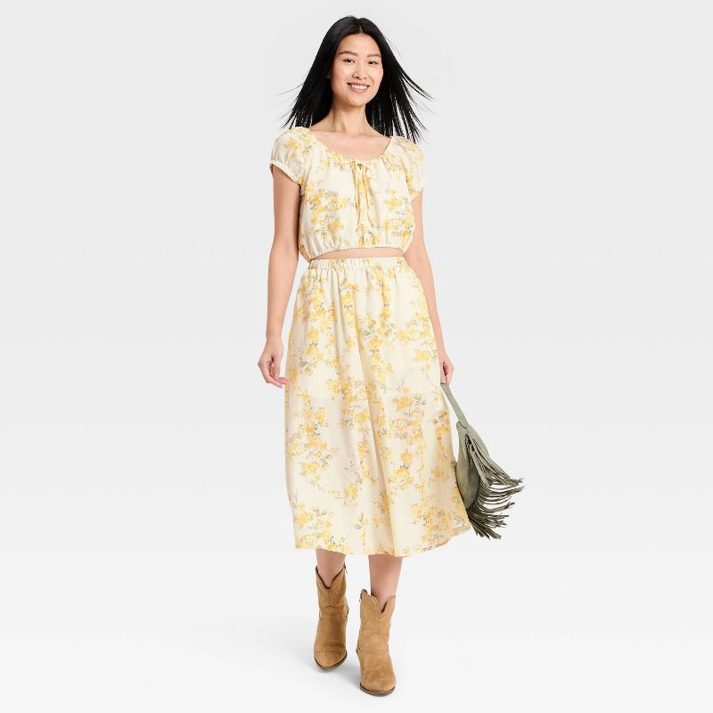 Bring a touch of sophistication to your wardrobe with this Short Puff-Sleeve Tie Top from A New Day™. Made of cotton-rayon blend fabric, this crop top keeps you cool and comfy. It features front ties …