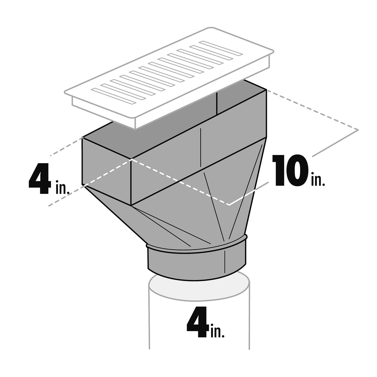 Creates a straight, in-line transition from a round pipe to a floor register or grille. Connects to 6-in round pipe or insulated flexible duct. Constructed from 30-gauge galvanized steel for durabilit…