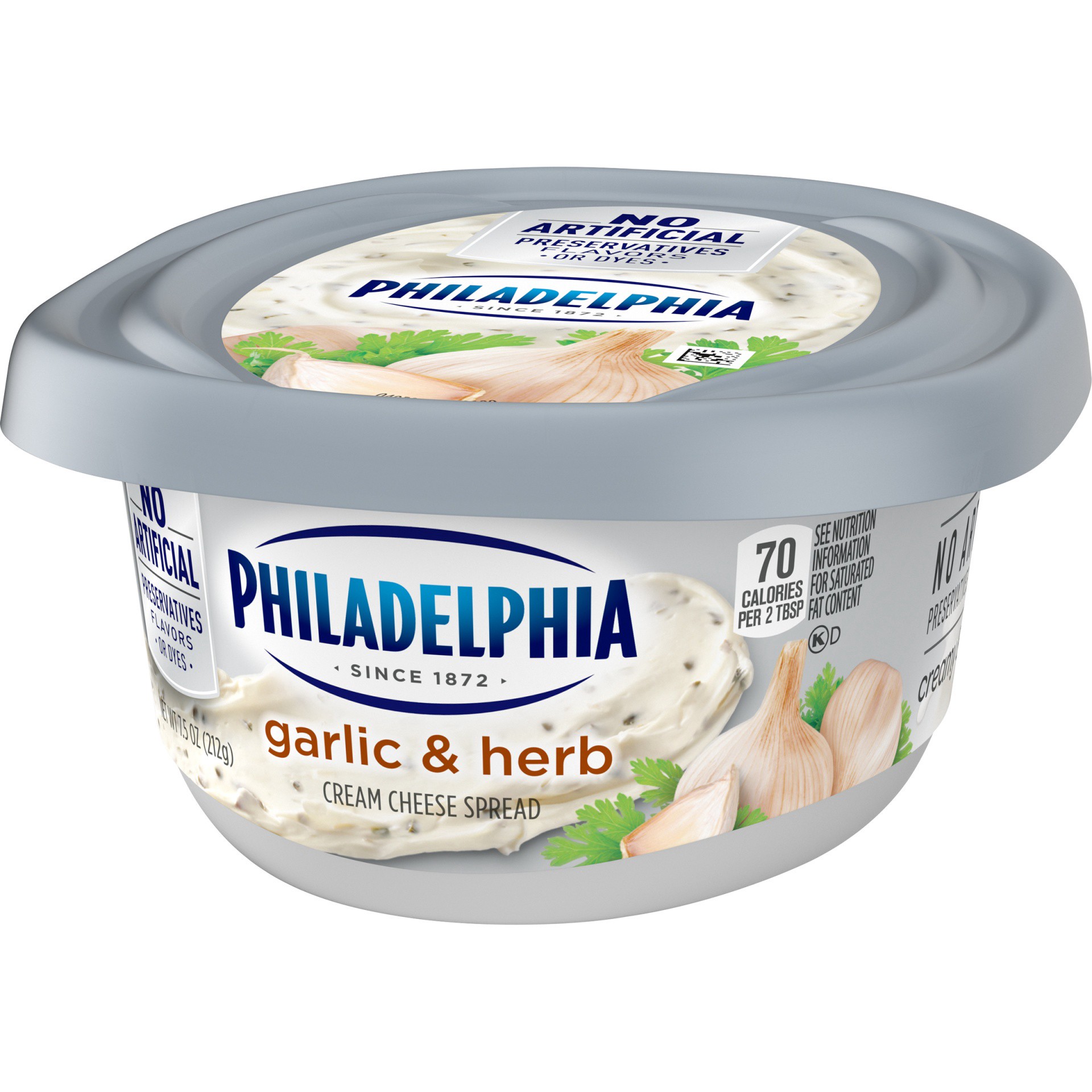 Philadelphia Garlic and Herb Cream Cheese Spread adds savory creaminess to your favorite dishes and foods. It's made with real garlic and herbs for a smooth, classic flavor. This Philadelphia cream ch…
