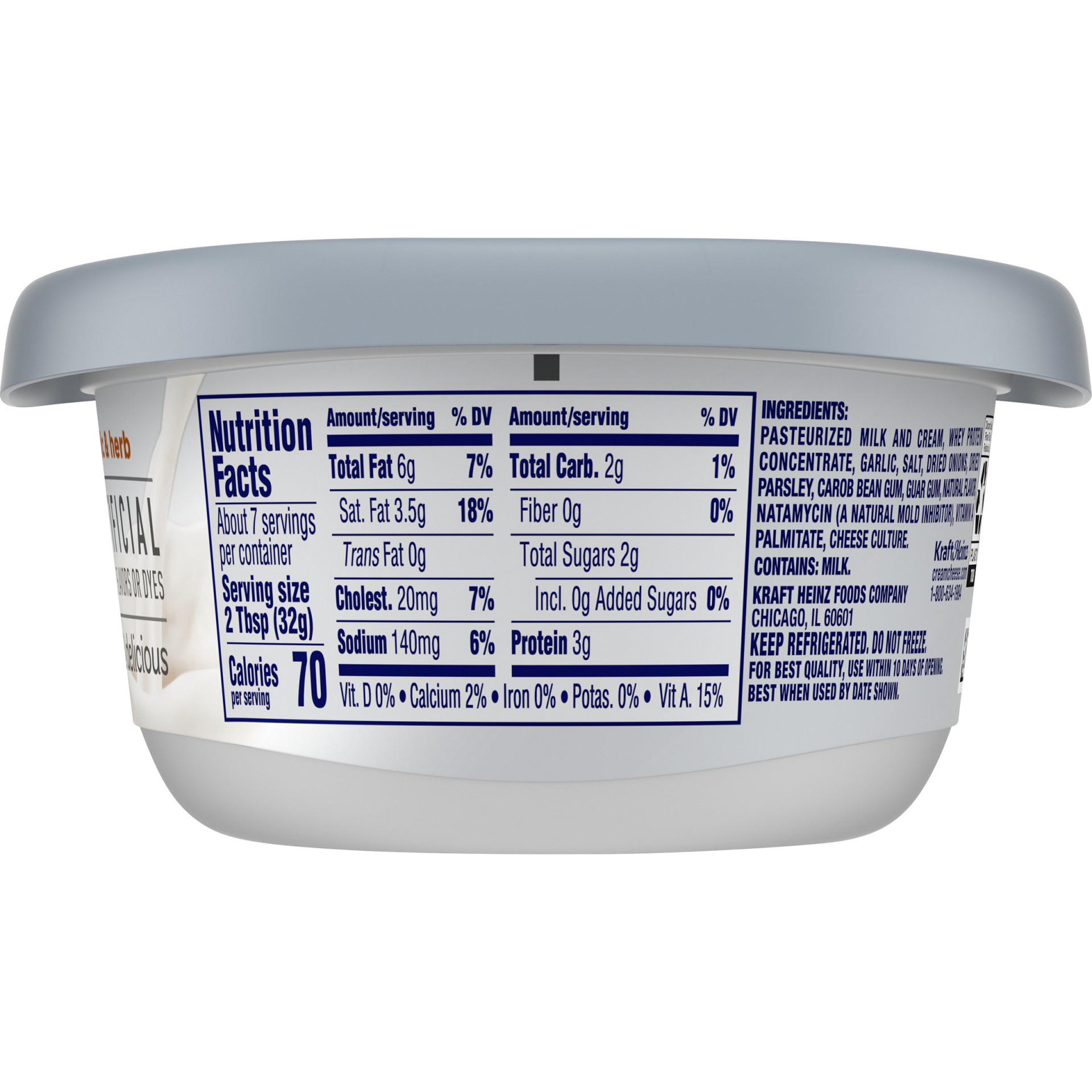 Pasteurized Milk And Cream, Whey Protein Concentrate, Garlic, Salt, Dried Onions, Dried Parsley, Carob Bean Gum, Guar Gum, Natural Flavor, Natamycin (a Natural Mold Inhibitor), Vitamin A Palmitate, Ch…