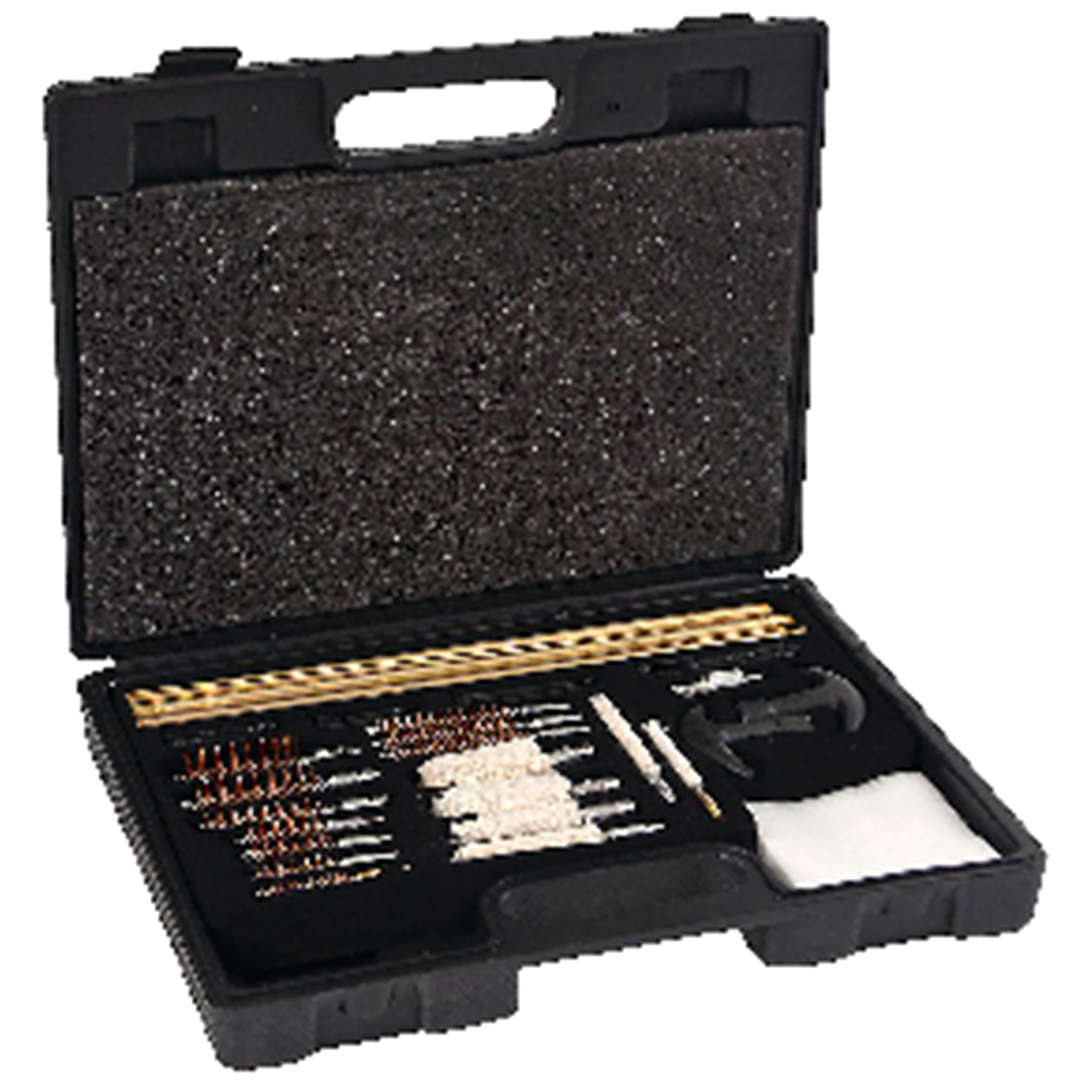 Kit includes 2 brass rods, one for shotgun, one for rifles and pistolsCotton swabs for .270, .30, .38-.357, .410 bore, 12 gauge, and 20 gaugeBrushes for .17, .22, .270, .30, .38-.357, .40, .45, .410 b…