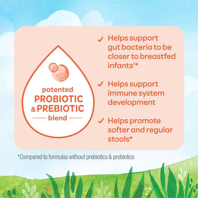 - Features our patented Probiotic and Dual Prebiotic Blend to help support immune system development and softer stools closer to breastfed babies**compared to formulas without prebiotics & probiotics
