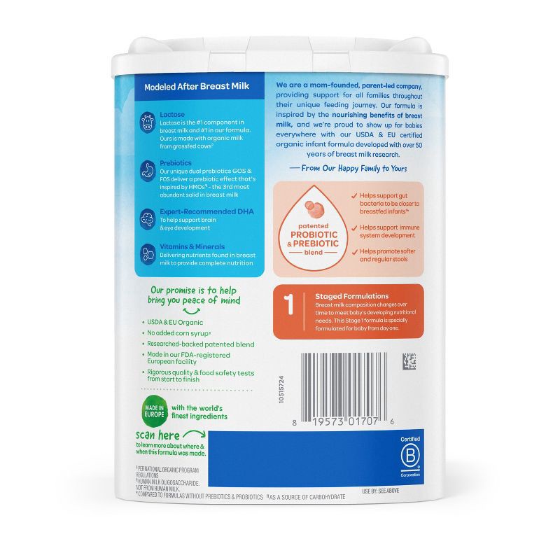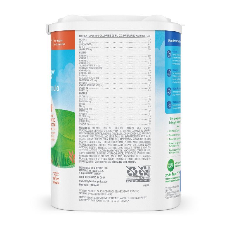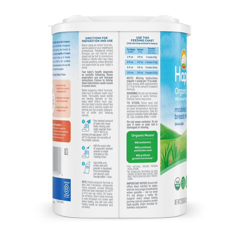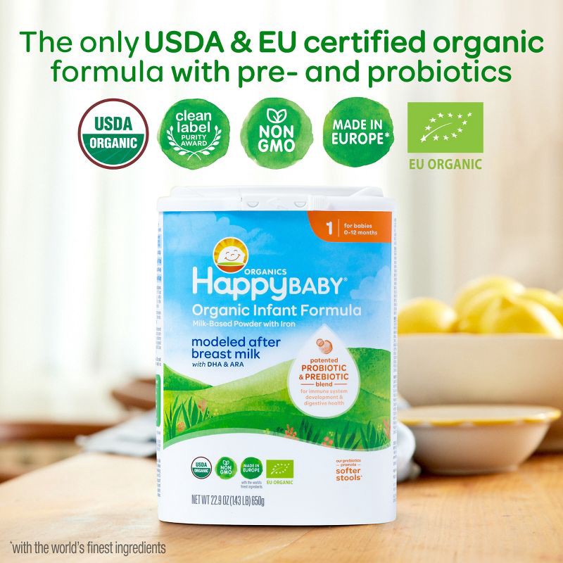 Happy Baby Organic Infant Formula Powder - Stage 1 - 22.9 oz: Milk-Based, Added Prebiotics & Probiotics, Non-GMO
