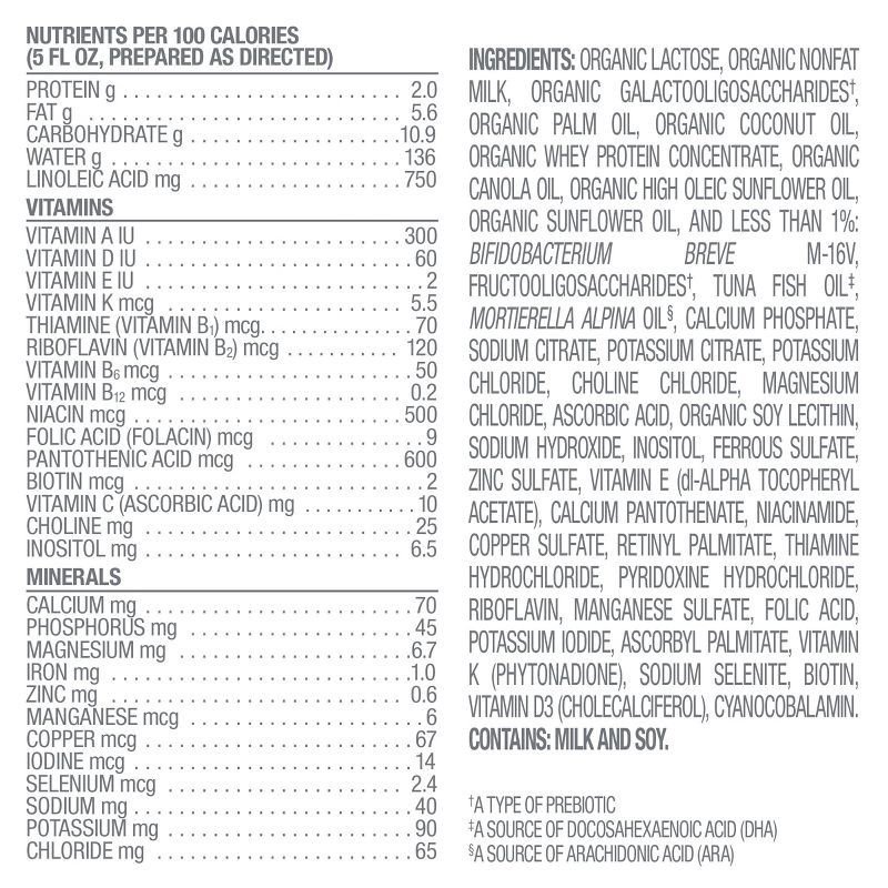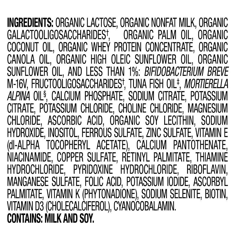 Organic Lactose, Organic Nonfat Milk, Organic Galactooligosaccharides(a), Organic Palm Oil, Organic Coconut Oil, Organic Whey Protein Concentrate, Organic Canola Oil, Organic High Oleic Sunflower Oil,…