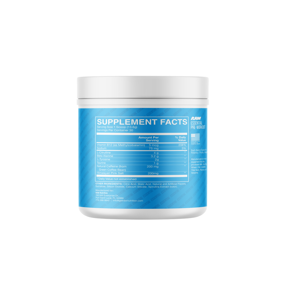 Raw Nutrition, Cbum Essential Pre-Workout, Blue Raspberry, 30 Servings, 14.36oz